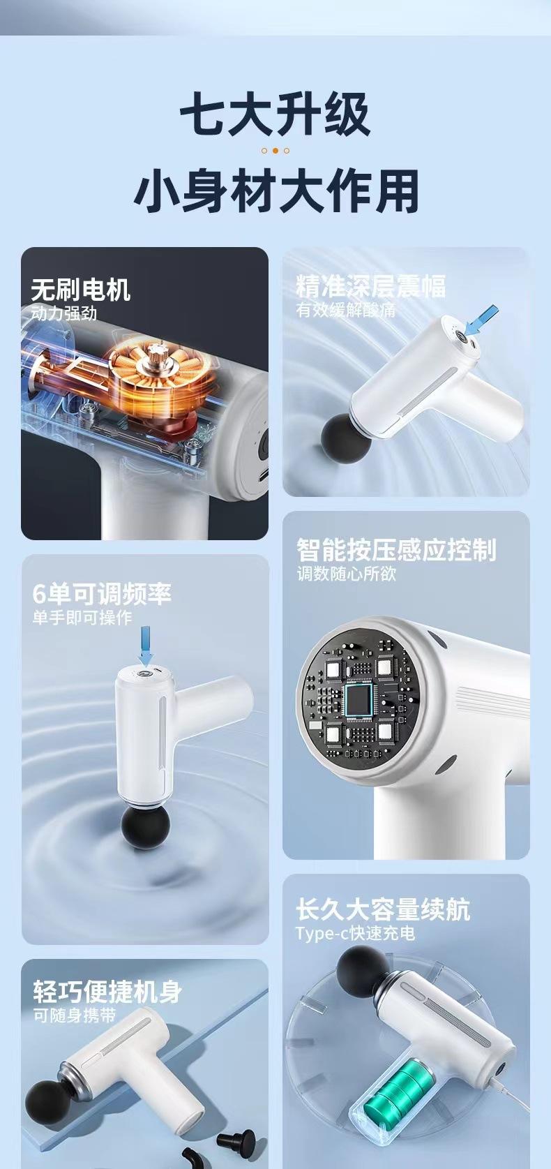 Pistola masajeadora muscular fascial, mini pistola para mascarilla de cuello, pistola fascial eléctrica, instrumento fascial profesional, silencioso para uso doméstico.