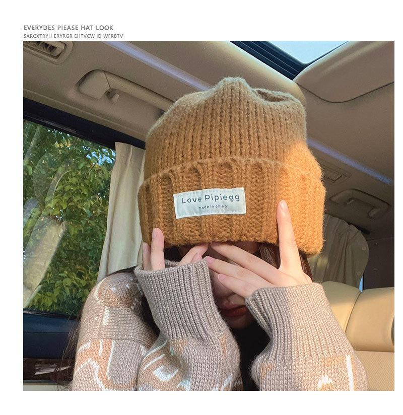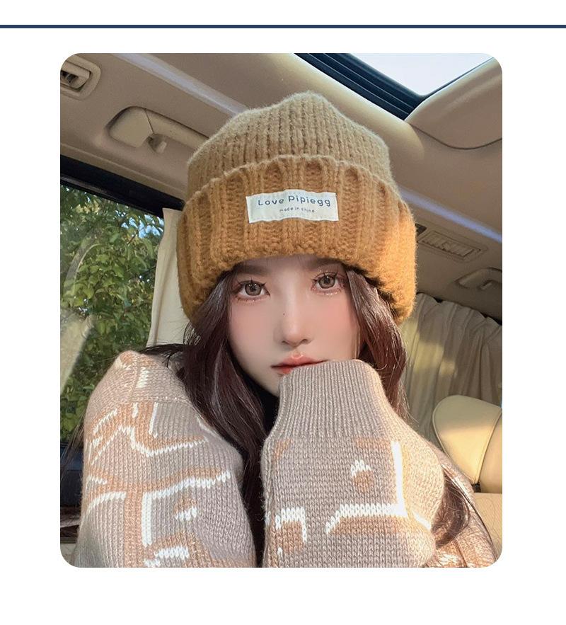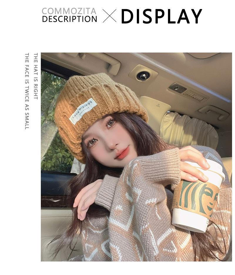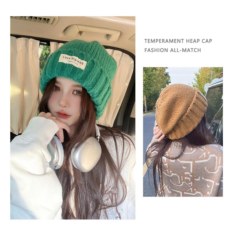 Gorro de otoño e invierno para mujer, estilo coreano, con protección para los oídos, de lana, para parejas, de punto cálido y con cabeza grande.