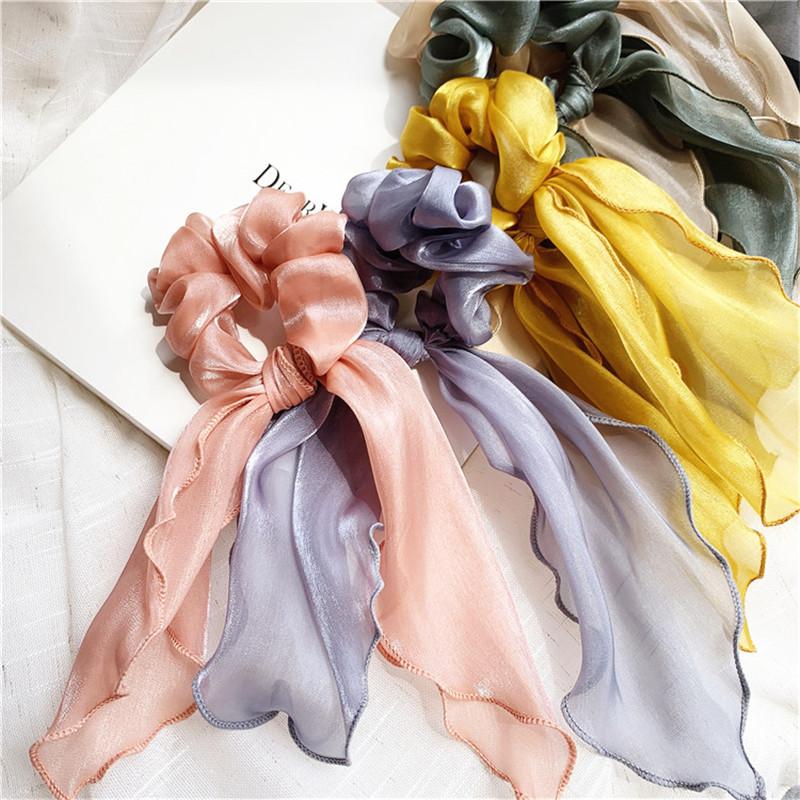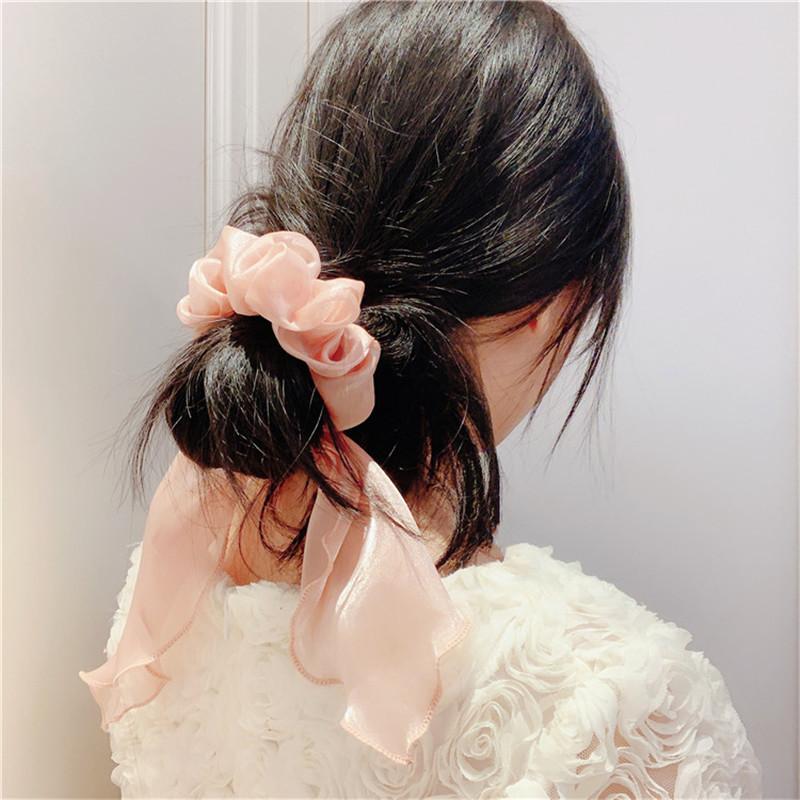 Banda para el cabello de intestino grueso de súper hada de Corea del Sur, cinta larga francesa para el cabello, cuerda para el cabello, lazo de gasa de celebridad de Internet, banda de goma, tocado para el cabello recogido