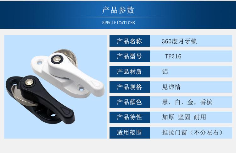 Cerradura deslizante para puerta y ventana de aleación de aluminio, cerradura de ventana, cerradura de media luna, cerradura de ventana de acero plástico, cerradura de ventana antirrobo bidireccional de 360 grados