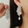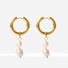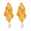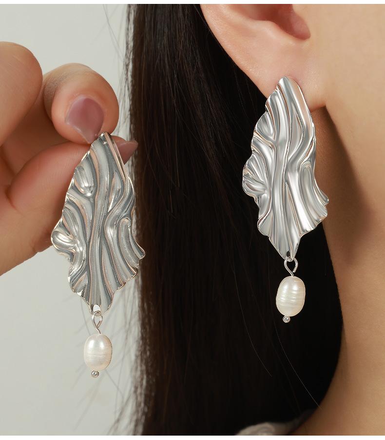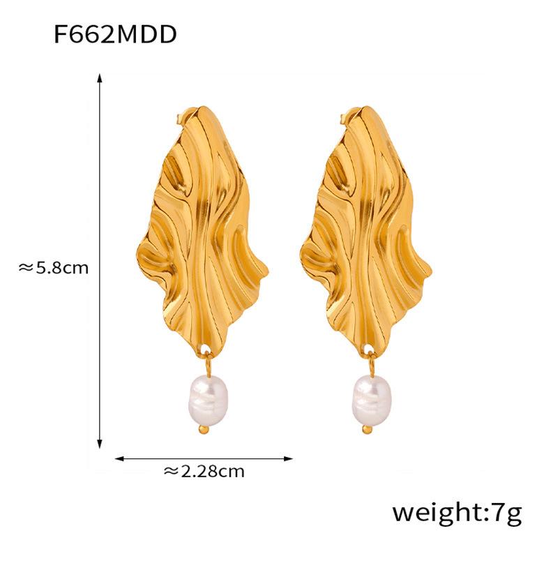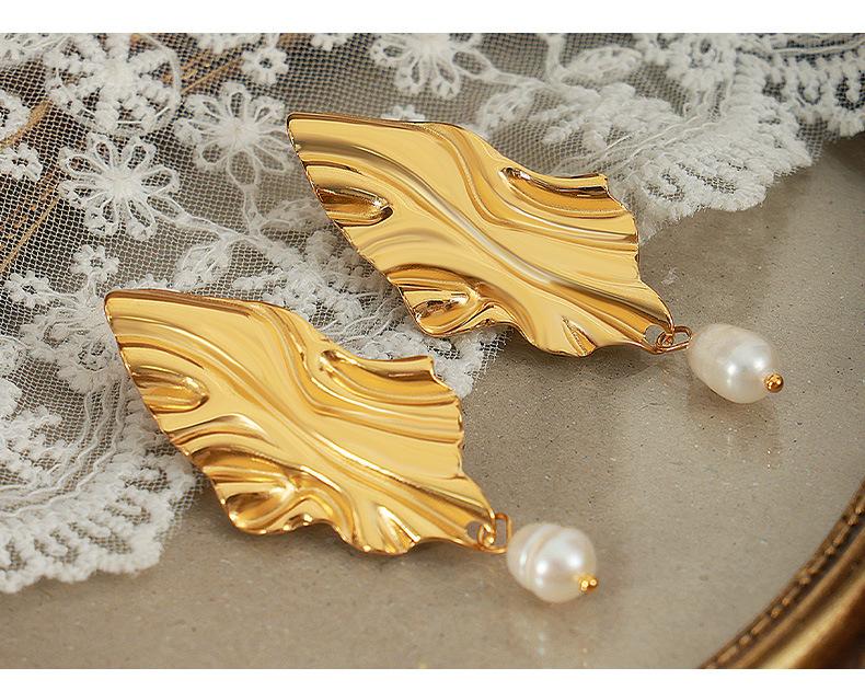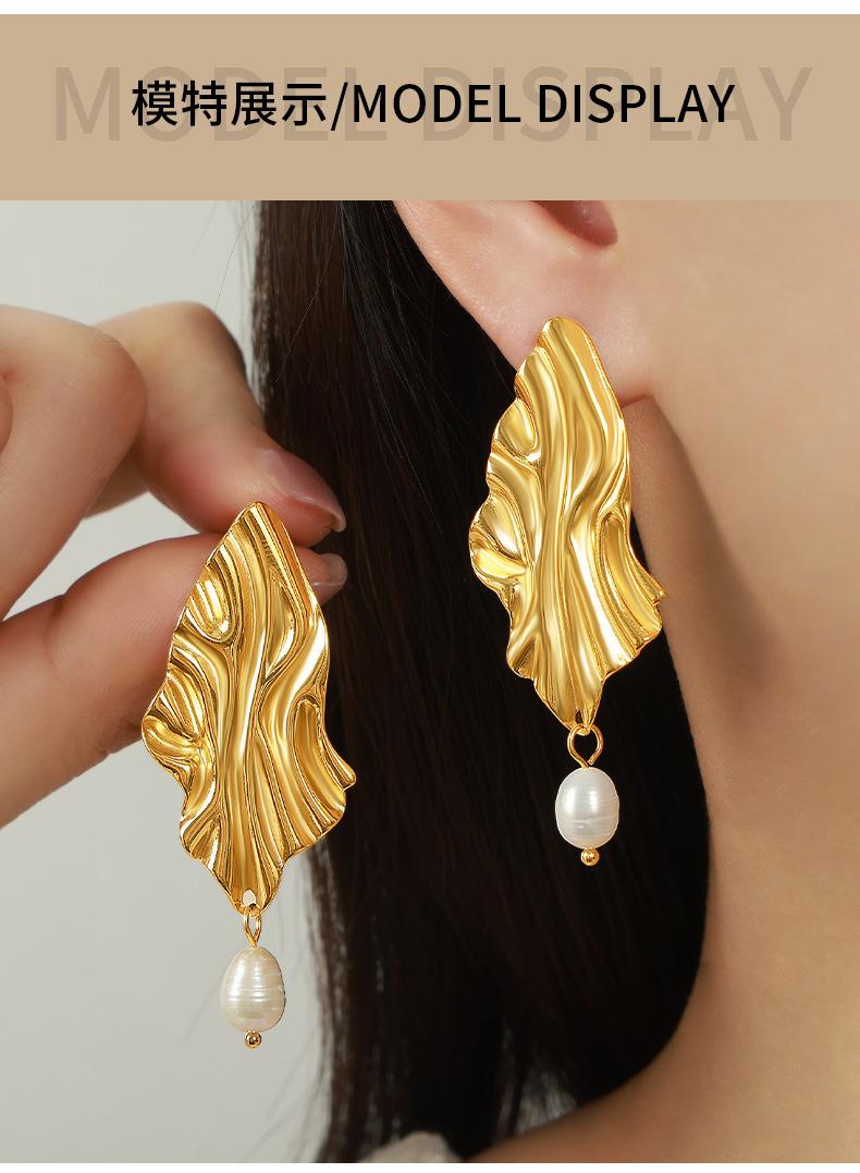 Europeo y Americano Nuevo Irregular Moda Lujo Ligero Personalizado Acero de Titanio Chapado en Oro Pendientes Colgantes de Perlas de Agua Dulce Joyería Mujer Venta al por Mayor