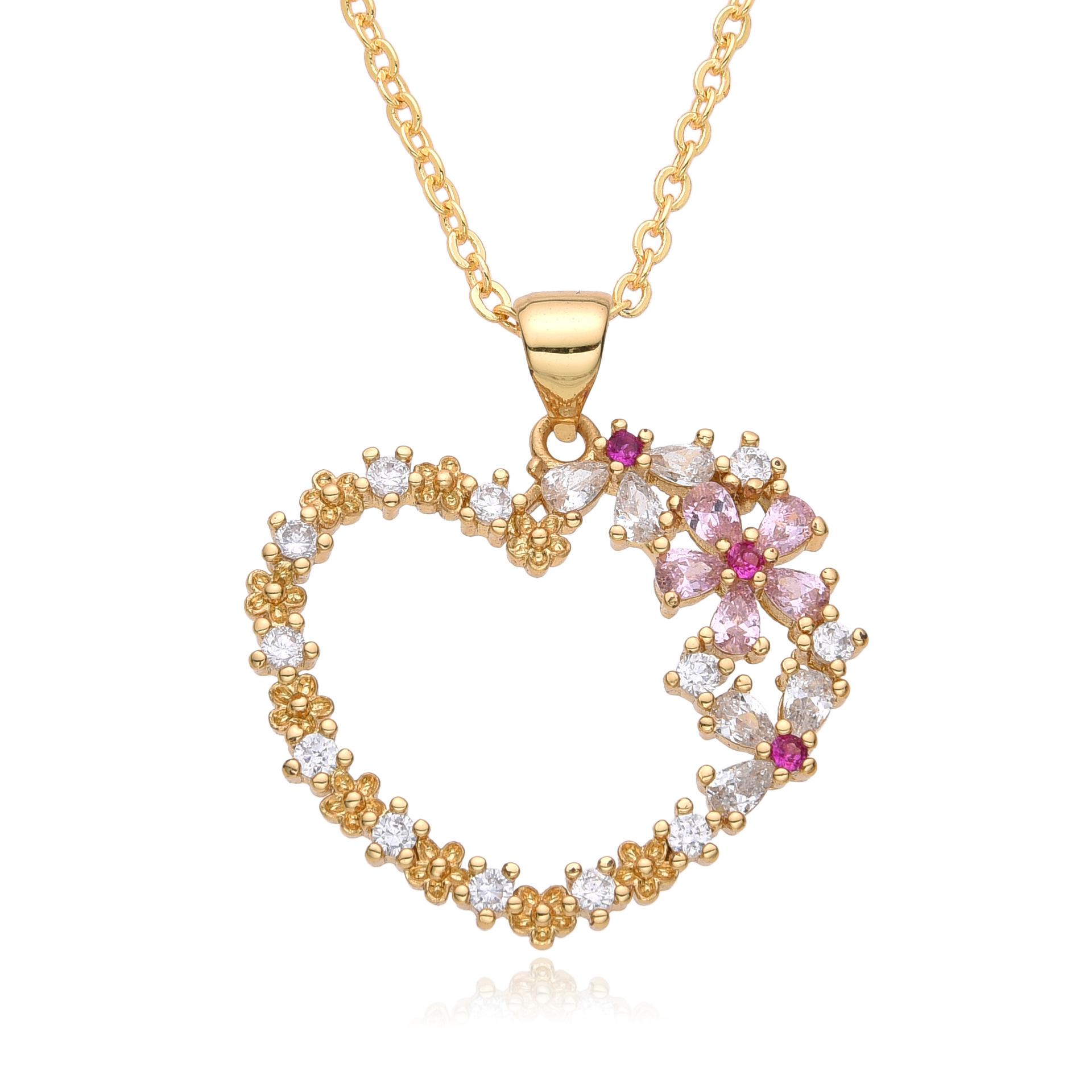 Estilo europeo y americano nuevo ins flor amor micro incrustado colgante latón chapado en oro collar moda transfronteriza joyería al por mayor