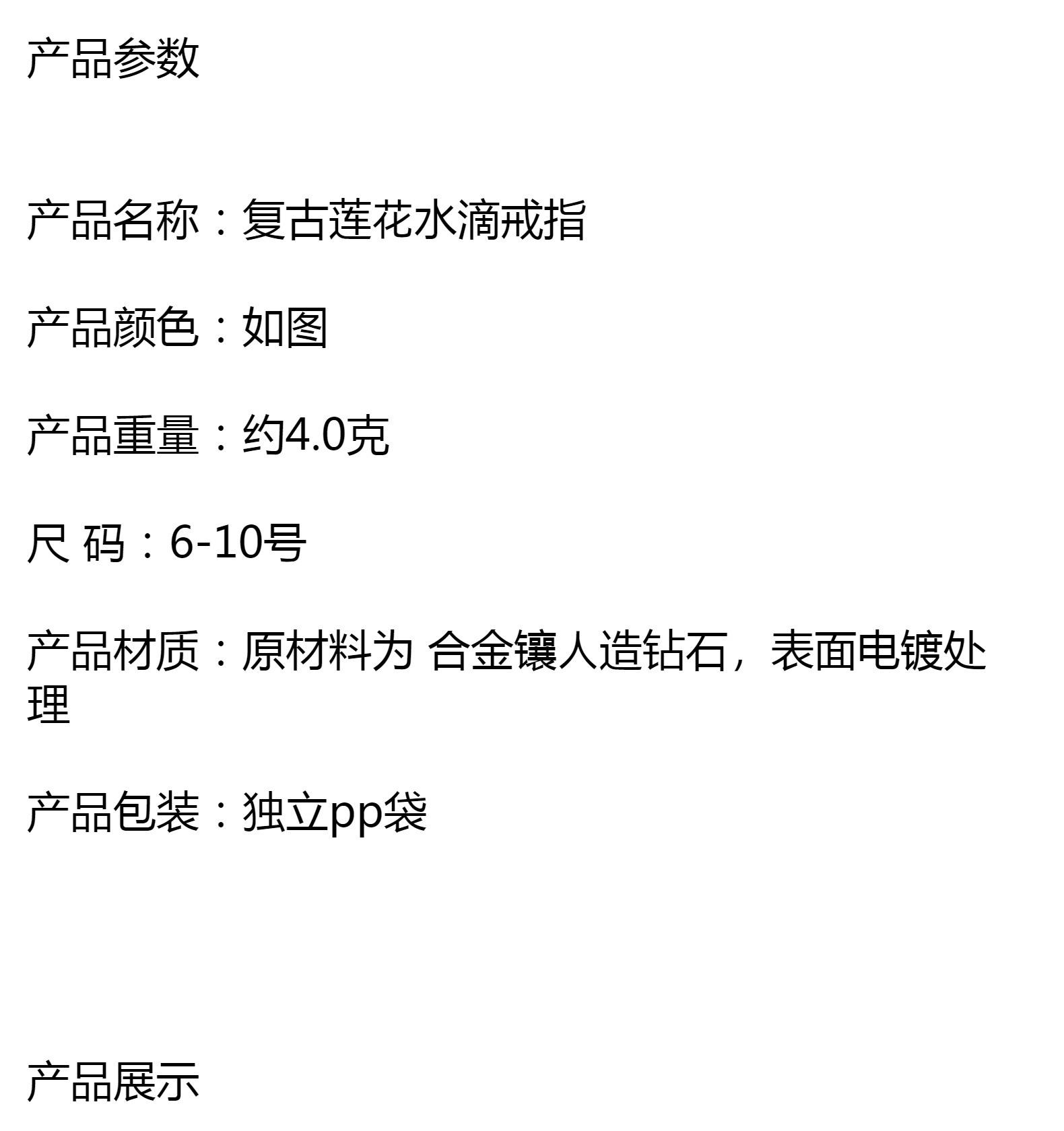 Vintage lotus water drop ring without card