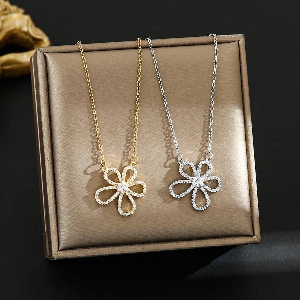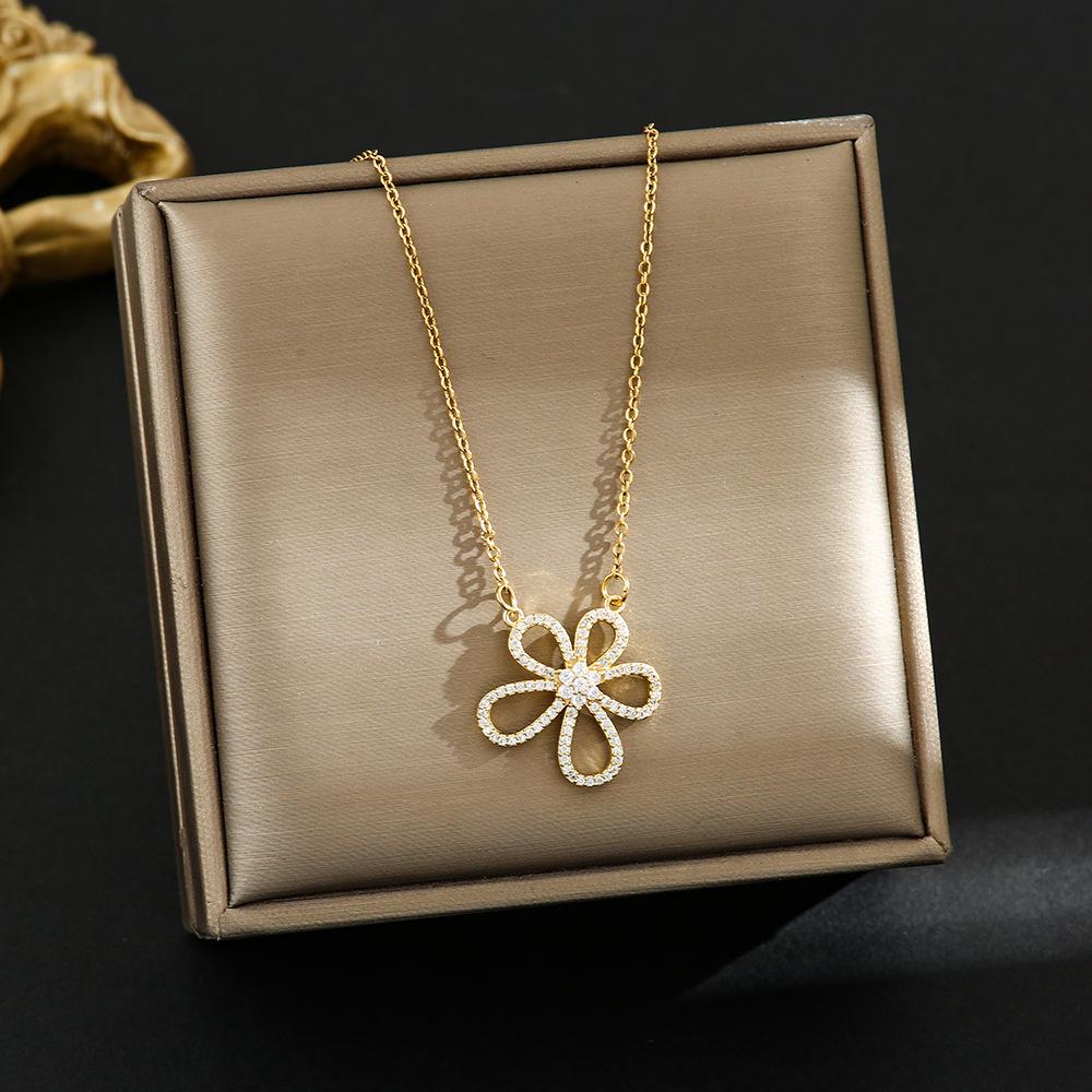 Collar de acero de titanio alto estilo TikTok para mujer, colgante de girasol de flor de cinco pétalos, moda combinable, cadena para clavícula, joyería al por mayor