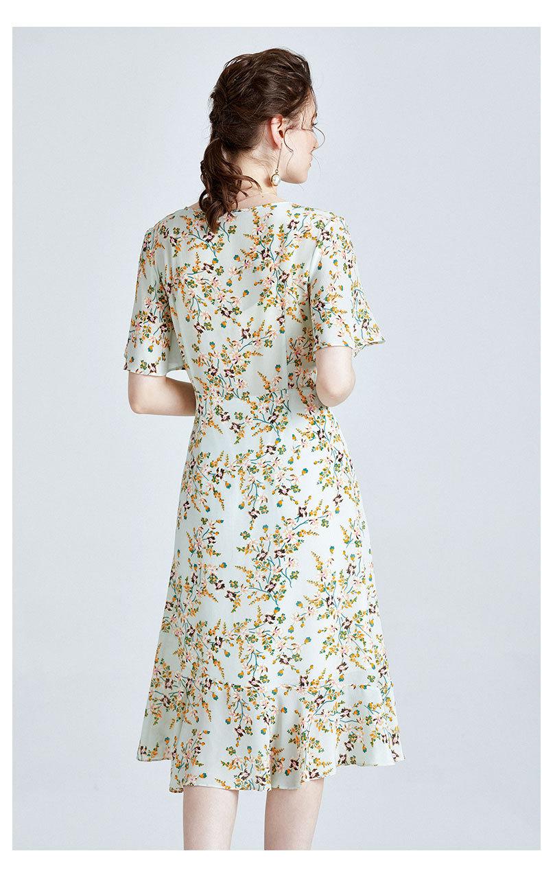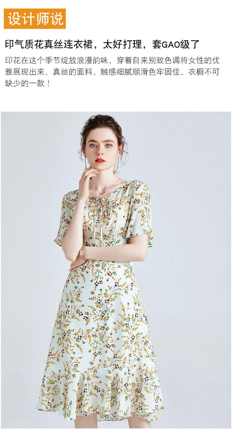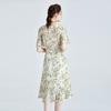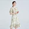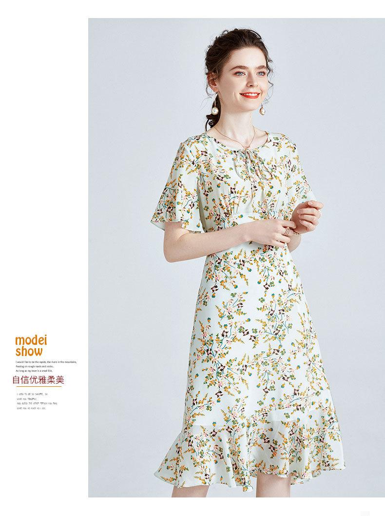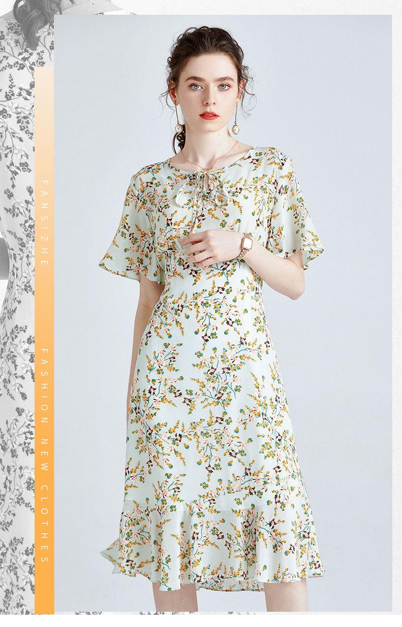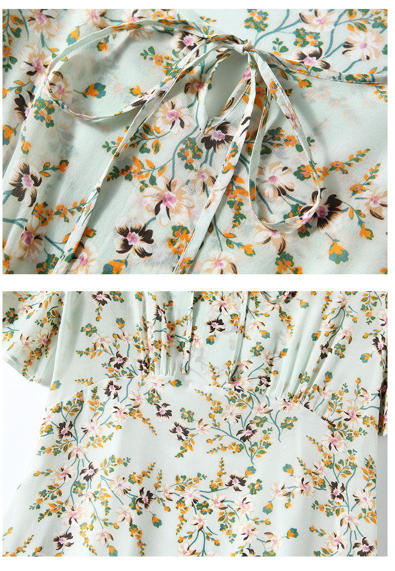 Vestido de Seda Seda de Morera Elegante Estampado Manga Corta Vestido Francés de Verano de Aspecto Juvenil como de Hada Cintura Adelgazante Falda Midi