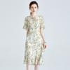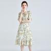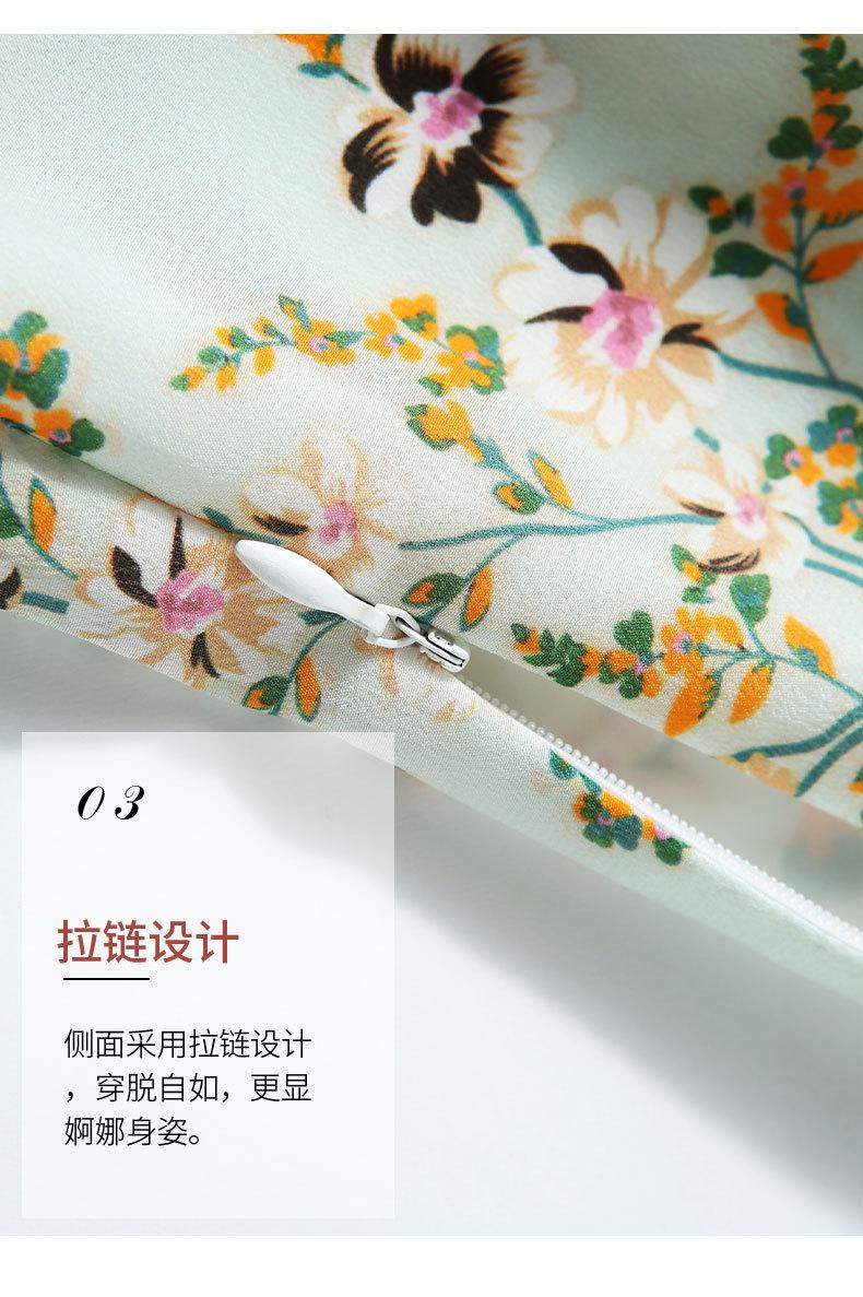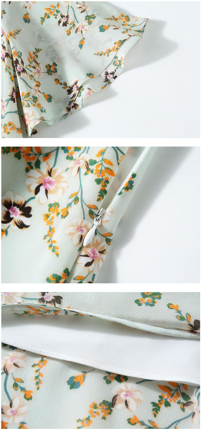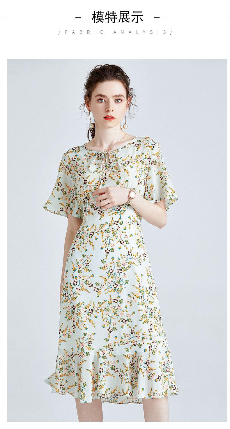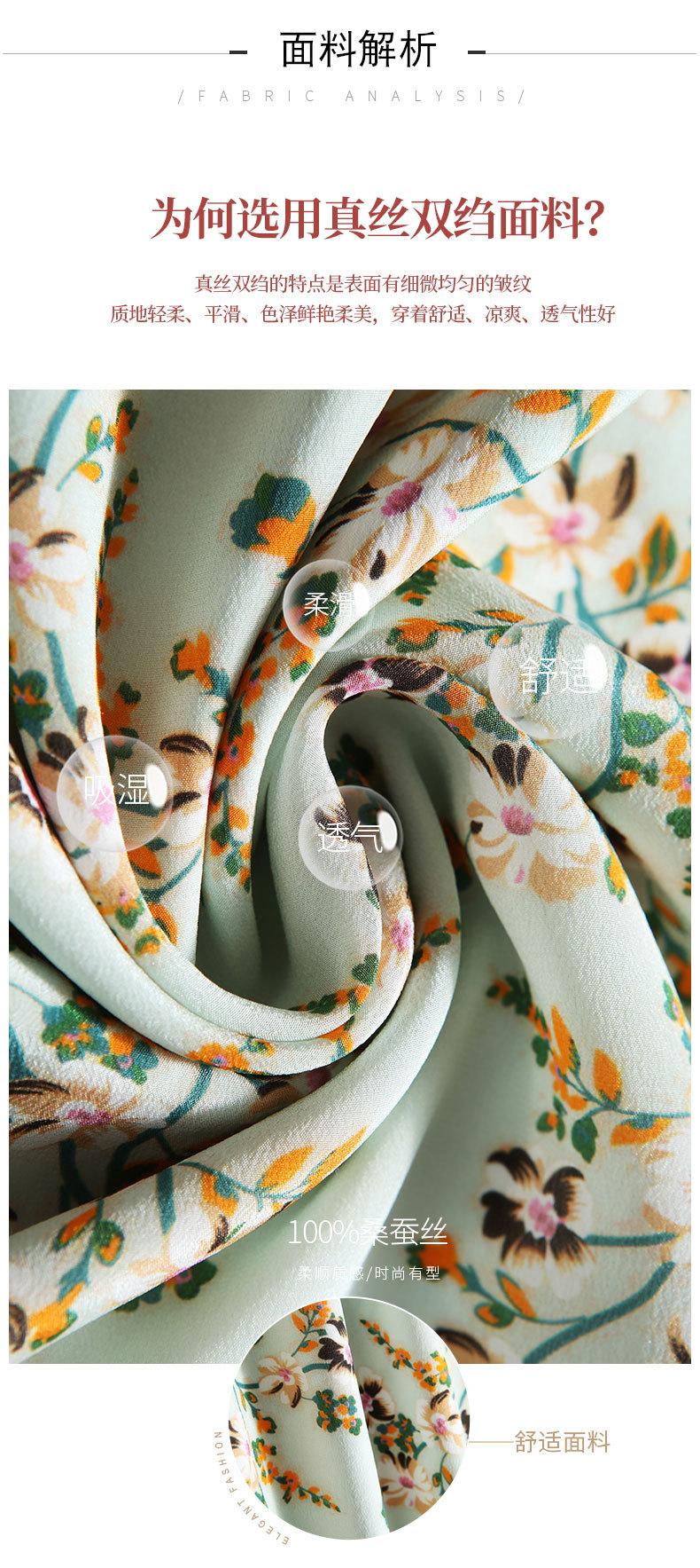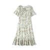 Vestido de Seda Seda de Morera Elegante Estampado Manga Corta Vestido Francés de Verano de Aspecto Juvenil como de Hada Cintura Adelgazante Falda Midi