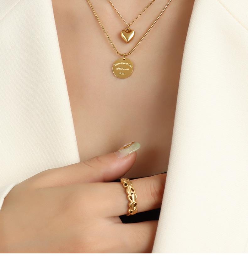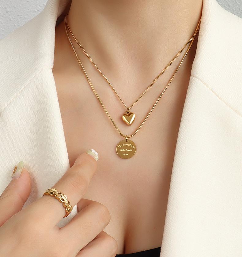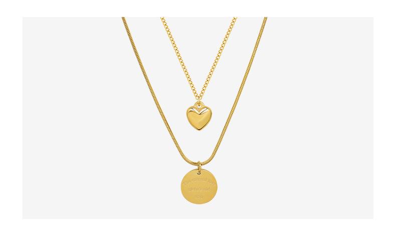 Marca estilo francés ins joyería redondo corazón amor colgante acero titanio oro 18K collar doble capa cadena clavícula