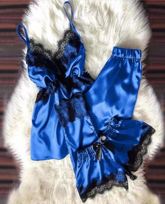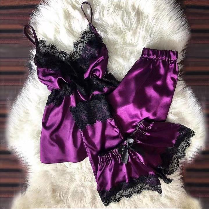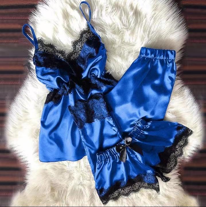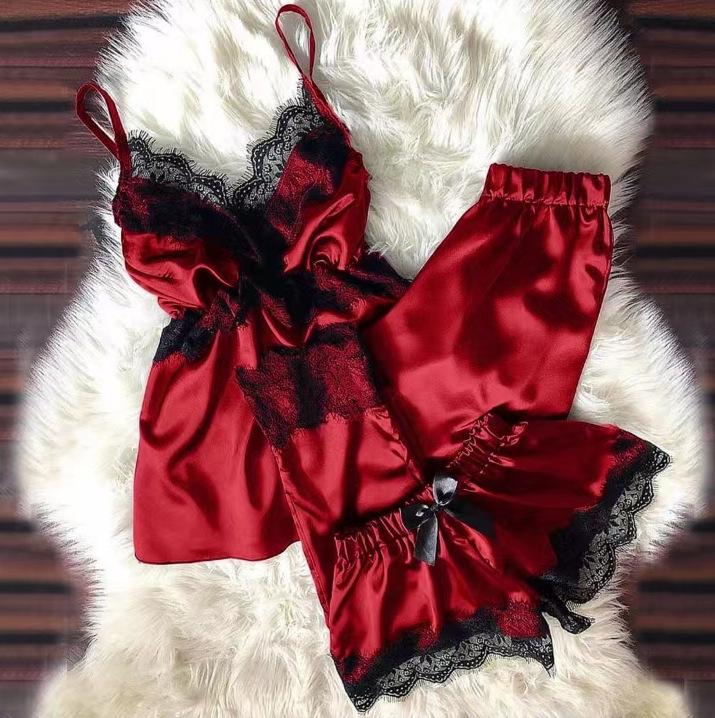 Pijama Sexy de Verano con Tirantes y Shorts para Mujer, Set de Tres Piezas de Talla Grande para Primavera y Otoño, Conjunto de Ropa para el Hogar para Mujer, Simple y Casual