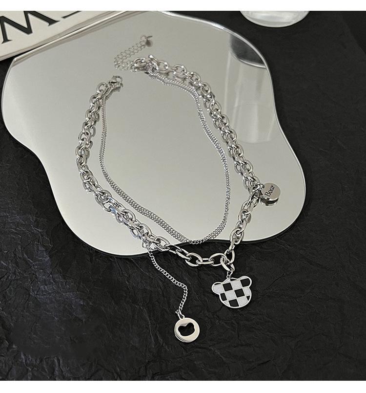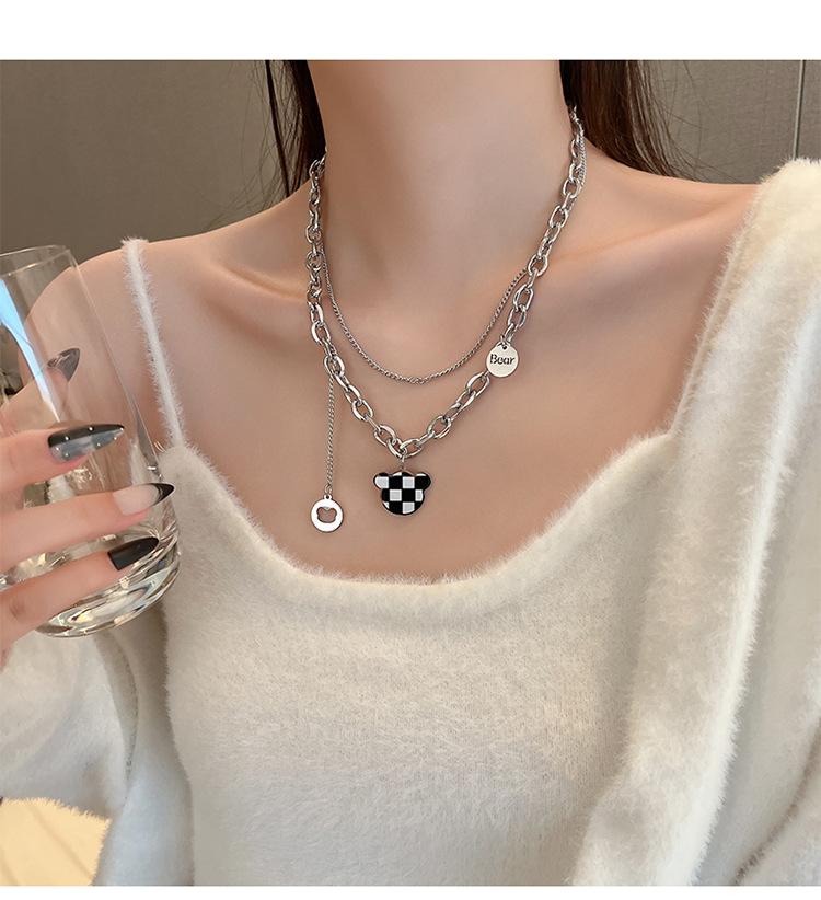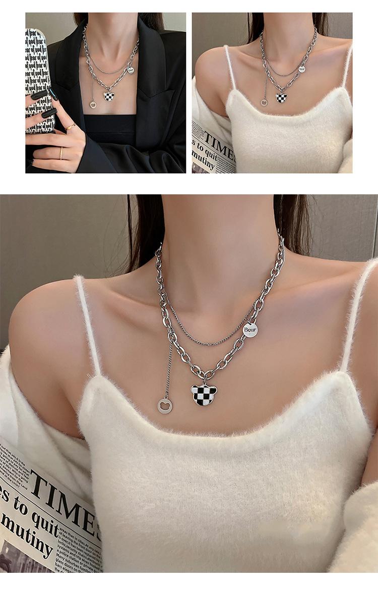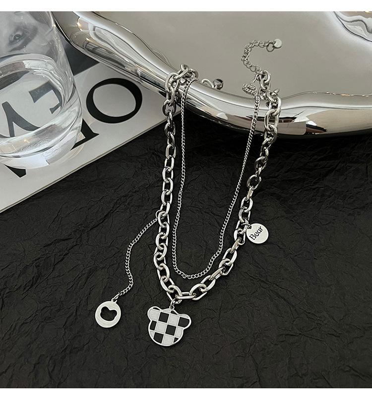 Collar de acero de titanio con diseño de mariposa y oso de diamantes para mujer, cadena de hueso de alta gama, ligera, de lujo, estilo hip hop. |