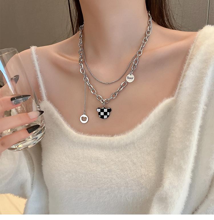 Collar con colgante de amor de estilo frío, joyería de acero de titanio, cadena de clavícula de hip-hop para parejas, hombres y mujeres, diseño de nicho de aleación corta |