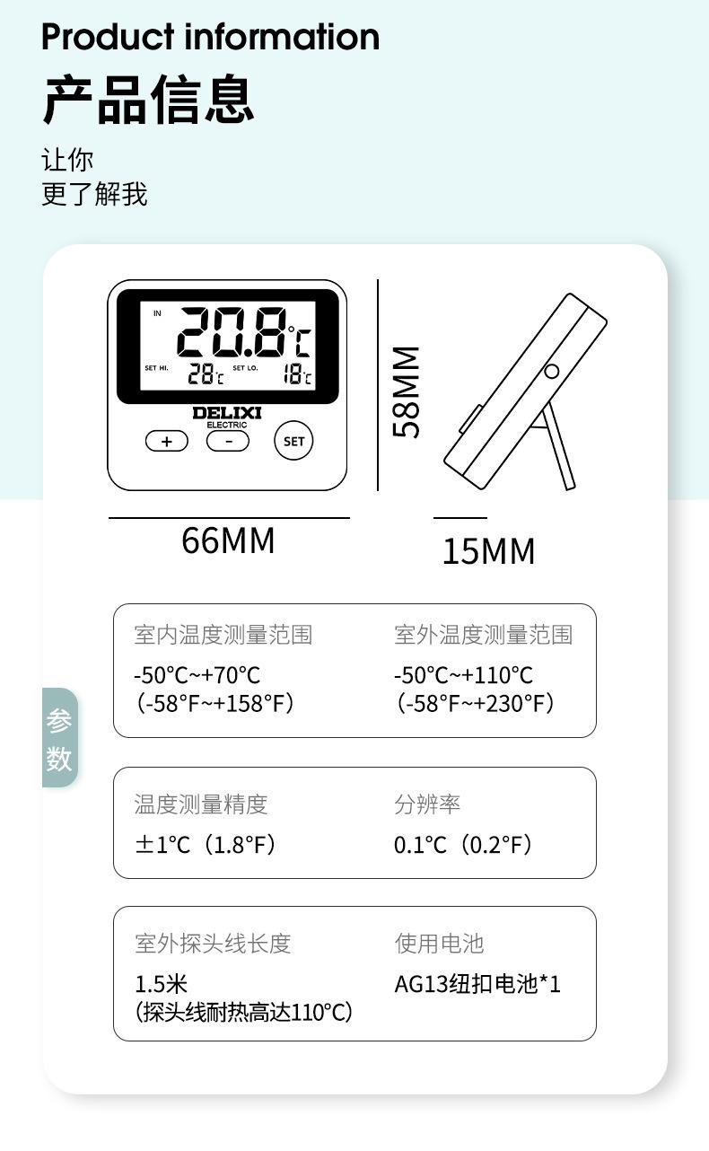 Termómetro Digital de Pantalla Delixi Termómetro para Acuario Refrigerador Medidor de Temperatura del Agua Ventosa Termómetro de Sonda para Interior y Exterior Control de Temperatura