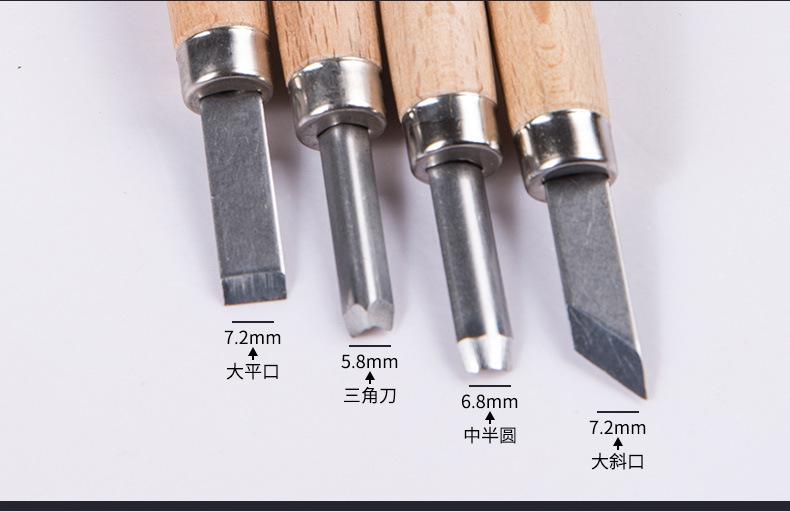 ★ Clasificación de cuchillos para tallar: cuchillo plano grande, cuchillo oblicuo grande, cuchillo semicircular mediano, cuchillo triangular
