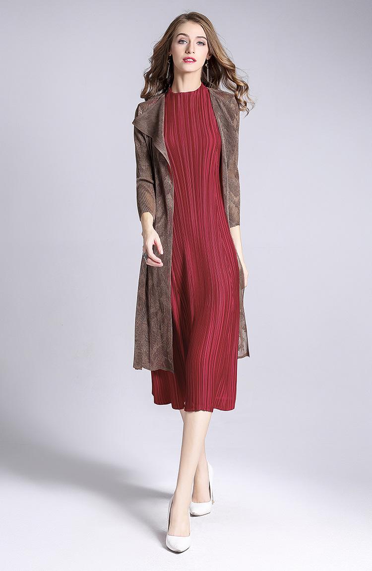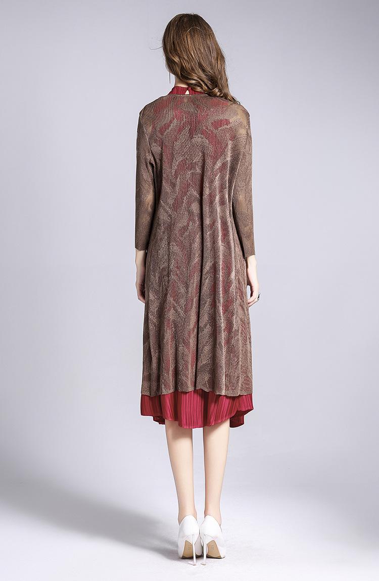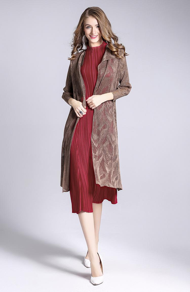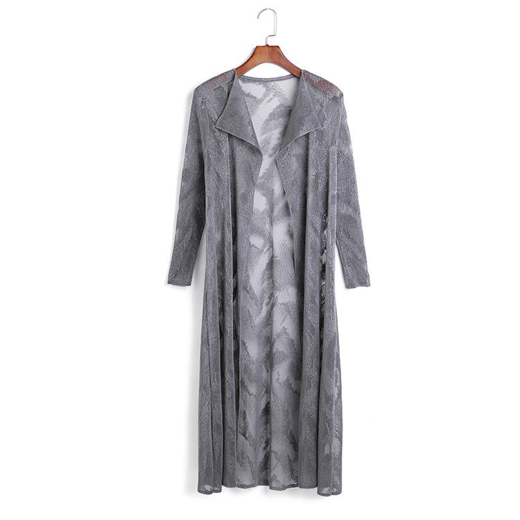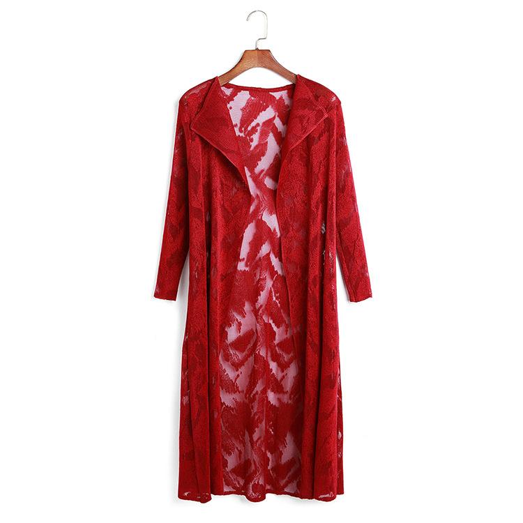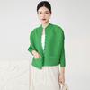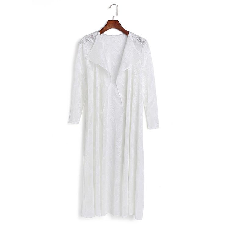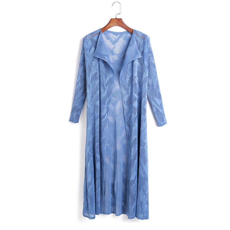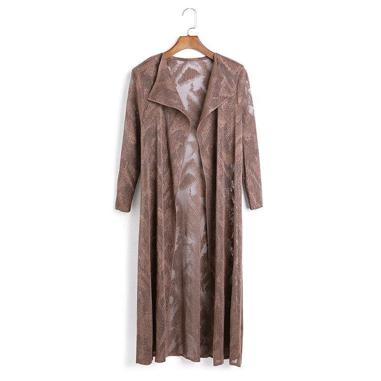 Miyake Malla Flor Oscura Abrigo Delgado Abrigo Liquidación de Verano para Mujer Solapa Plisada Manga Siete Puntos Ajustado Cárdigan Largo