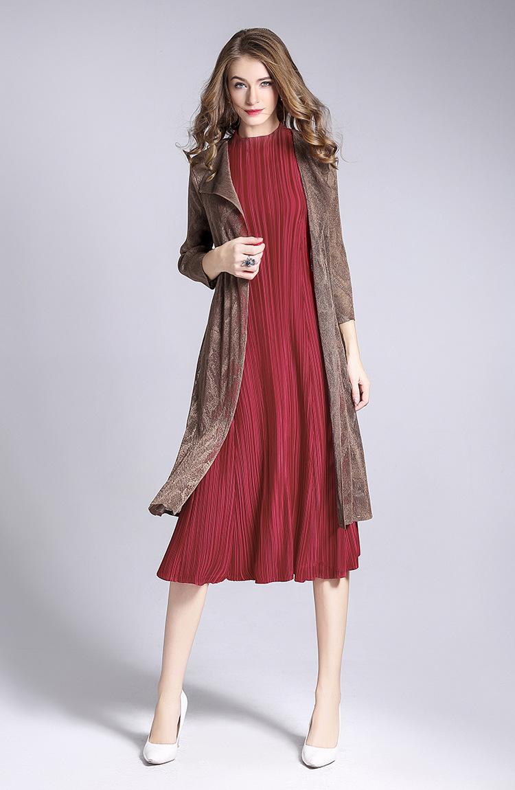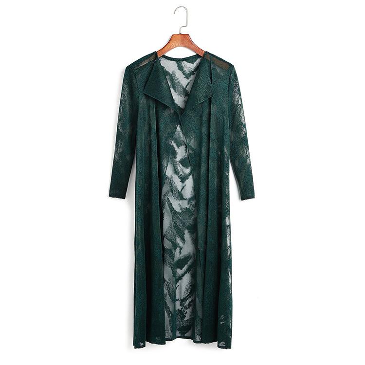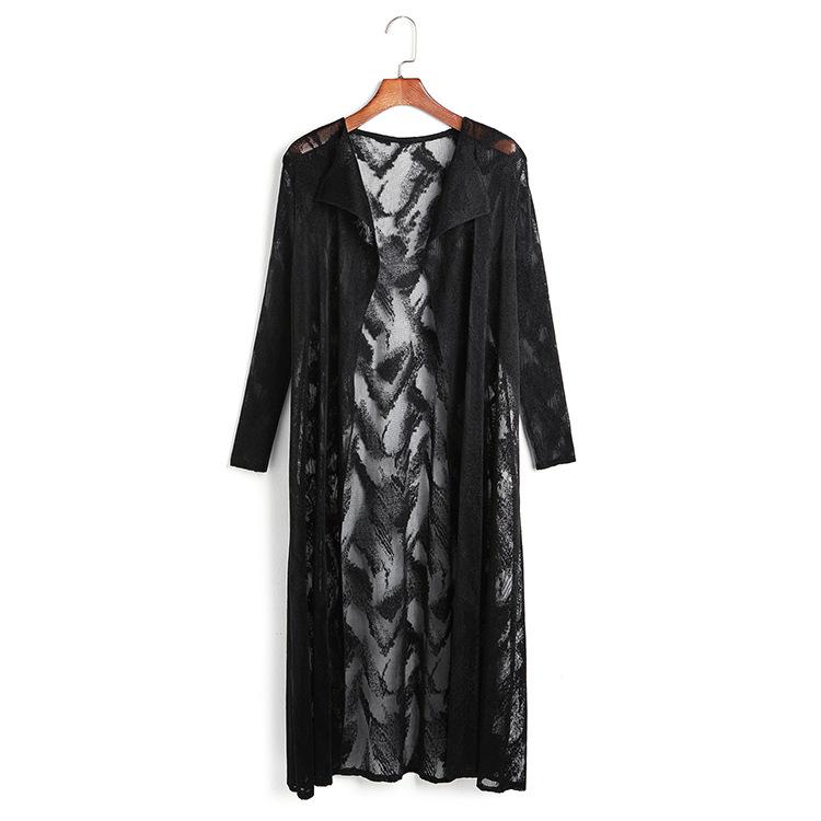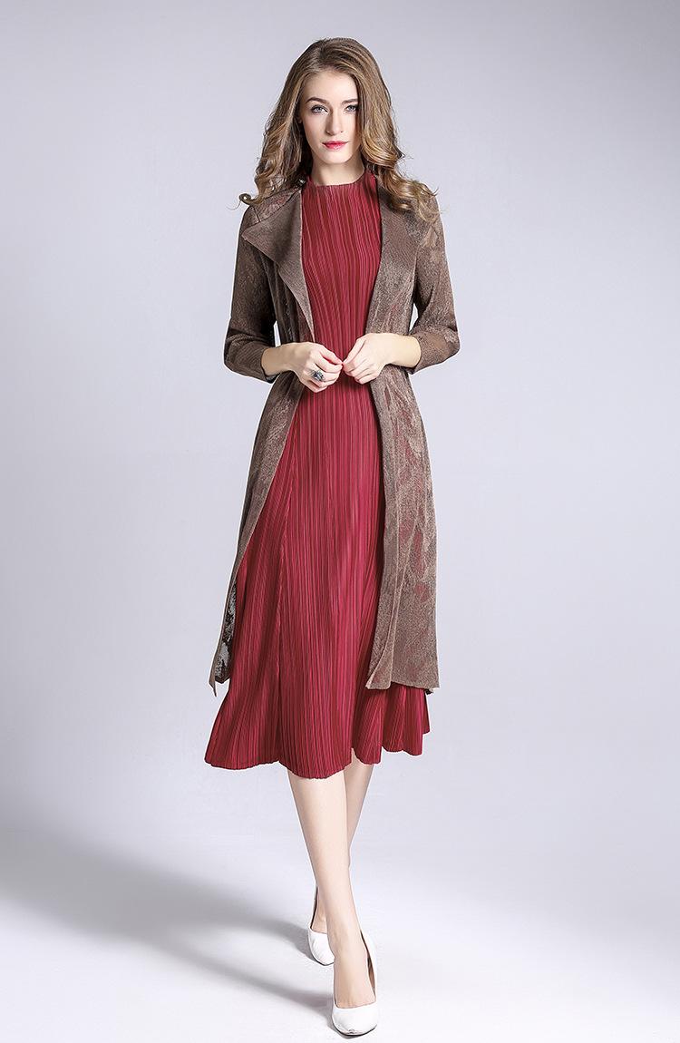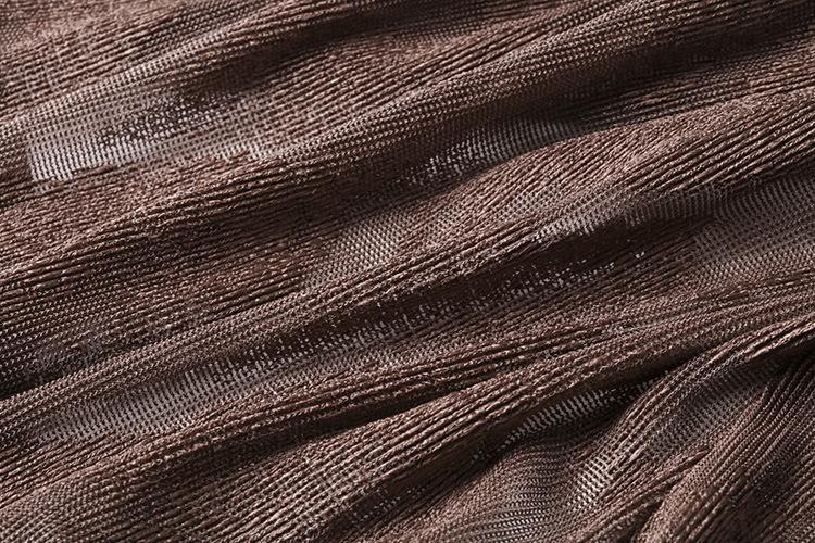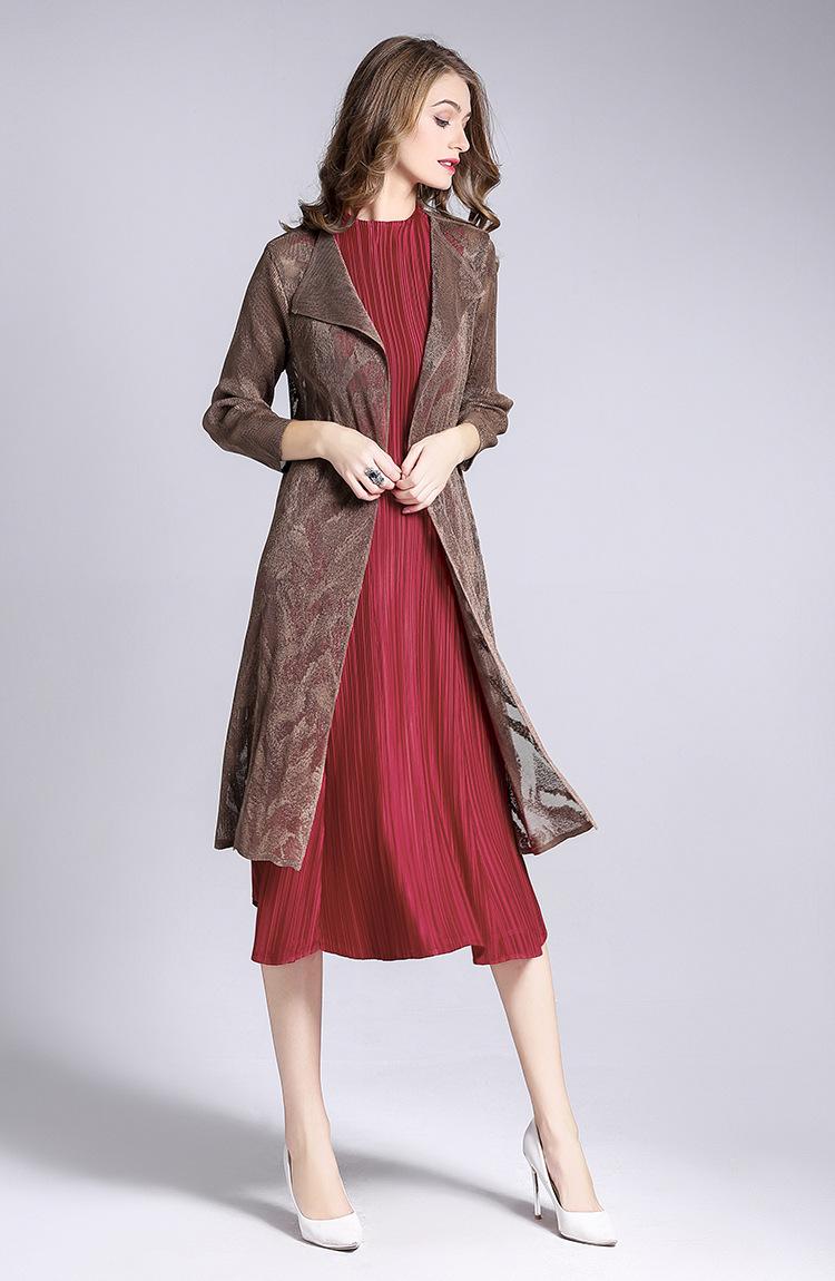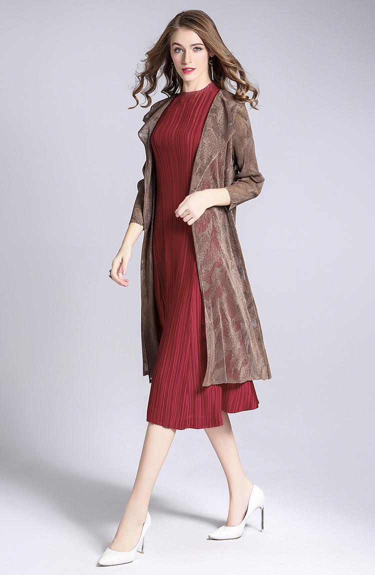 Miyake Malla Flor Oscura Abrigo Delgado Abrigo Liquidación de Verano para Mujer Solapa Plisada Manga Siete Puntos Ajustado Cárdigan Largo