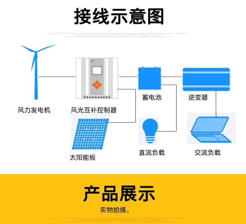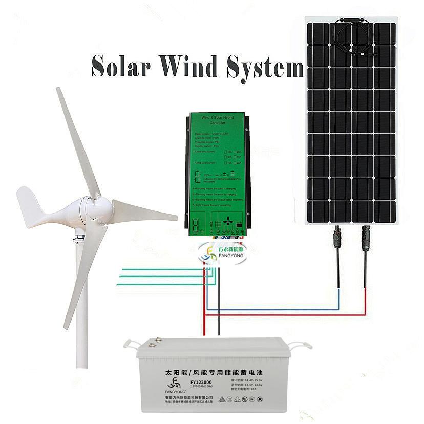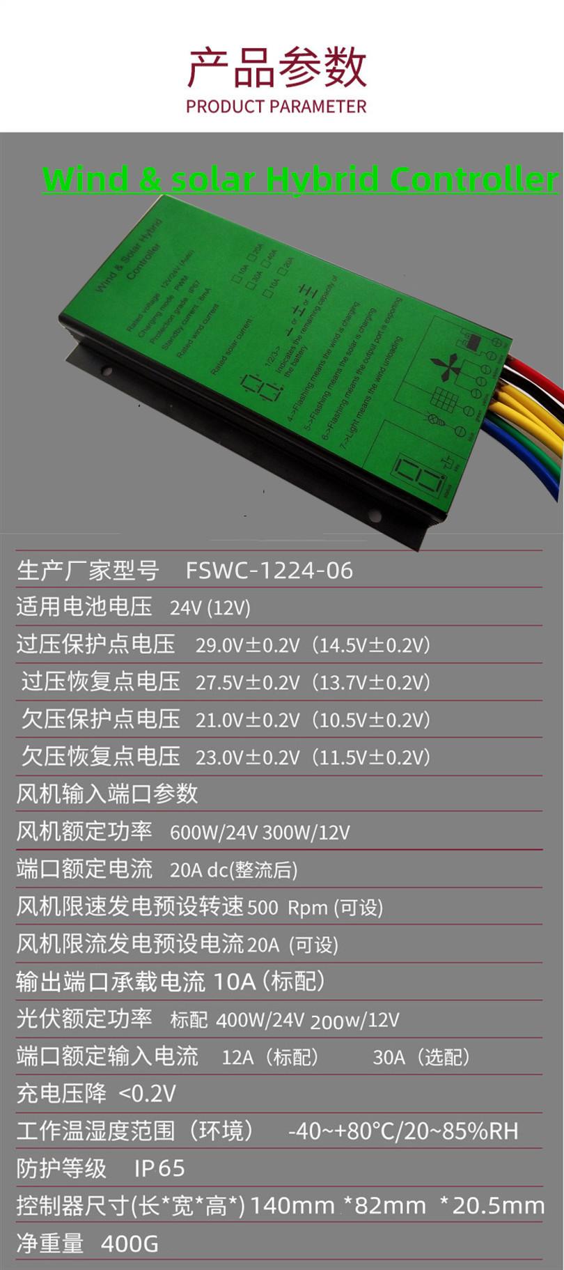 Controlador Híbrido Eólico y Solar Transfronterizo 12V24V500W600W800W Carga Híbrida Eólica y Solar a Prueba de Lluvia Turbina