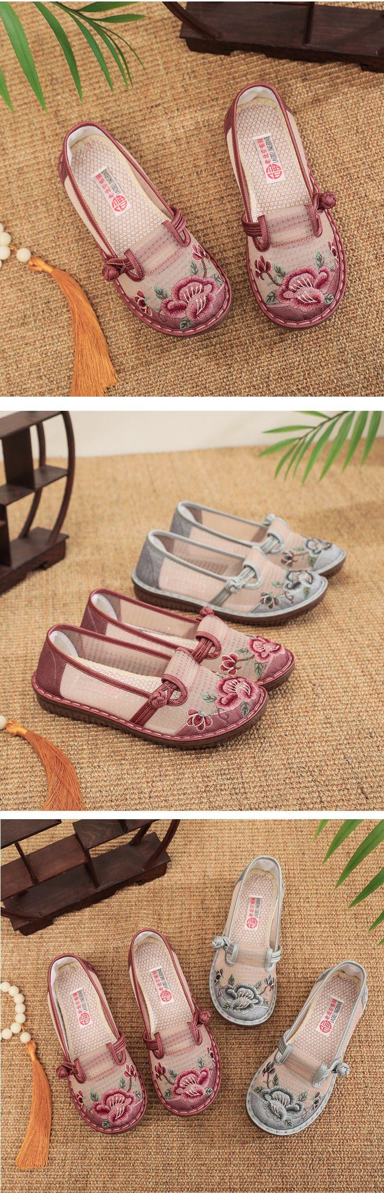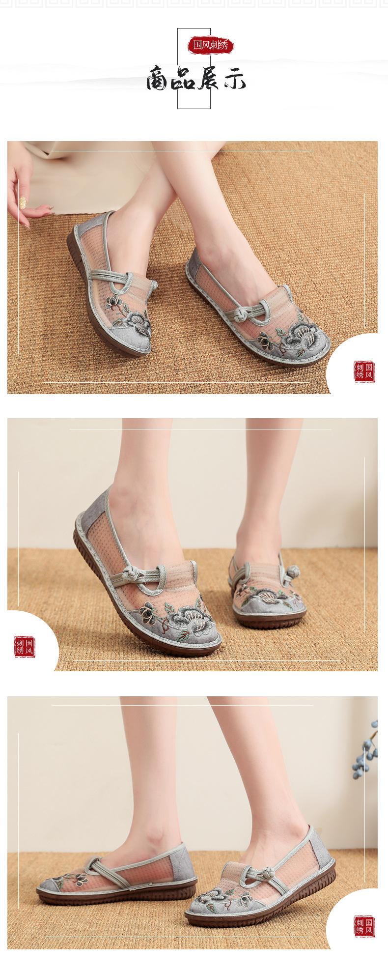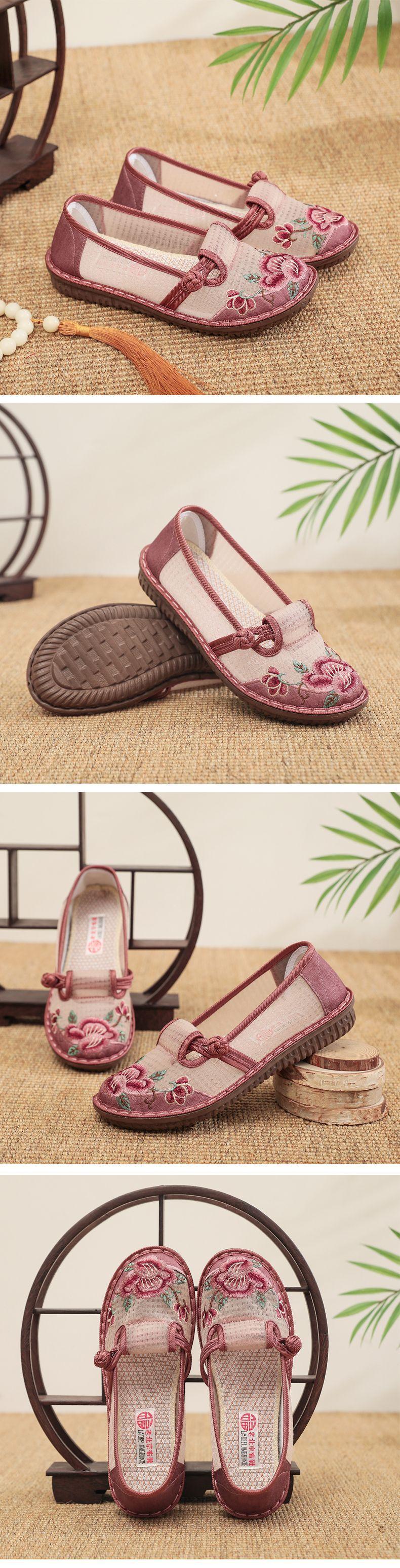 Verano Nuevo Zapatos de Tela de Beijing Antiguo Antideslizantes de Suela Blanda Zapatos de Madre Zapatos Transpirables para el Anciano Un Pedal Bordado Zapatos de Malla
