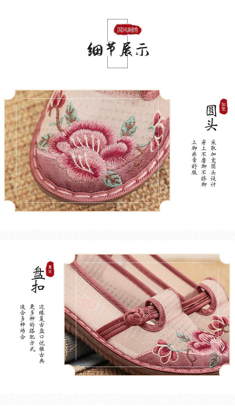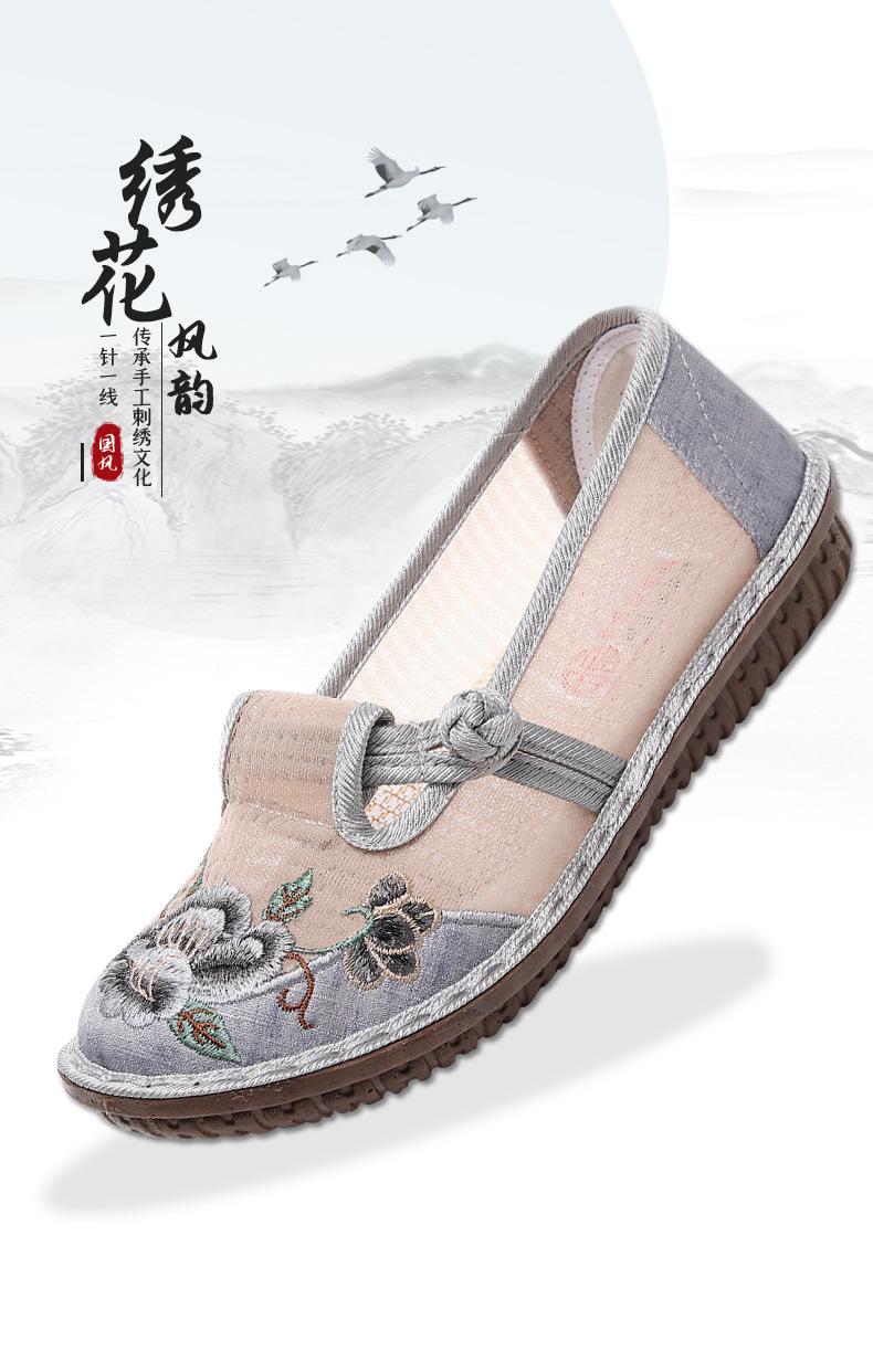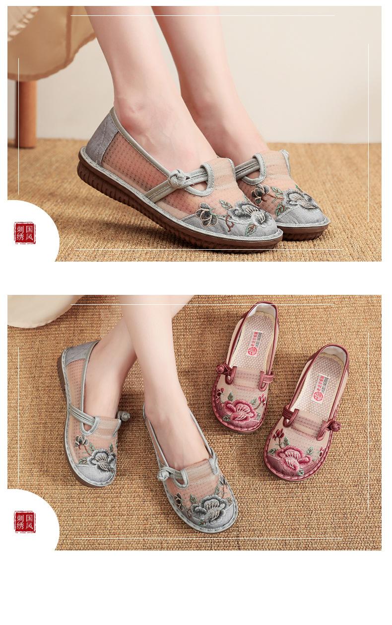 Verano Nuevo Zapatos de Tela de Beijing Antiguo Antideslizantes de Suela Blanda Zapatos de Madre Zapatos Transpirables para el Anciano Un Pedal Bordado Zapatos de Malla