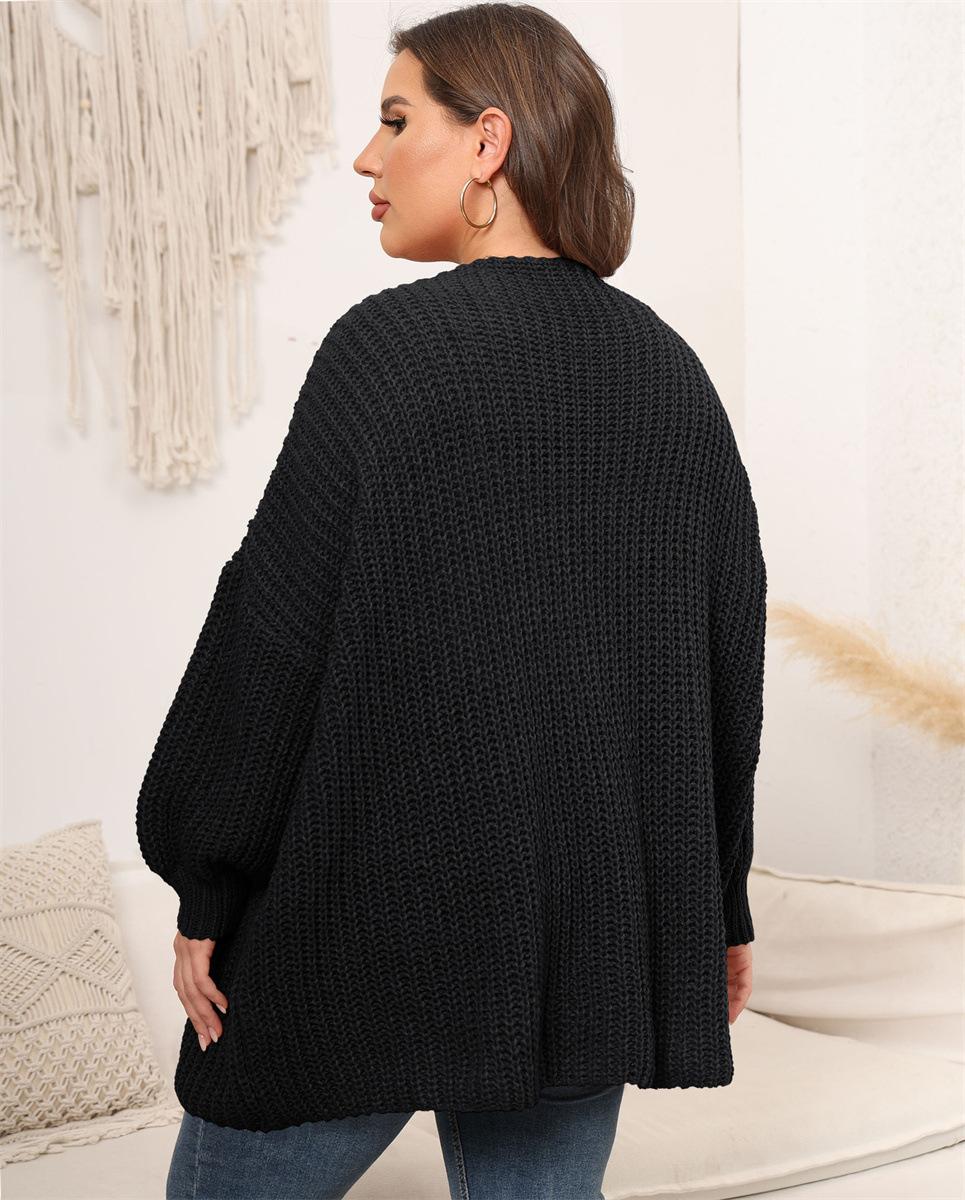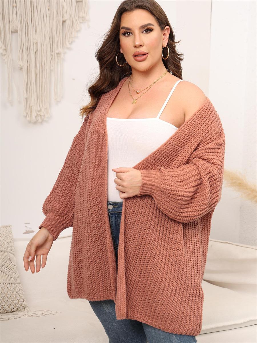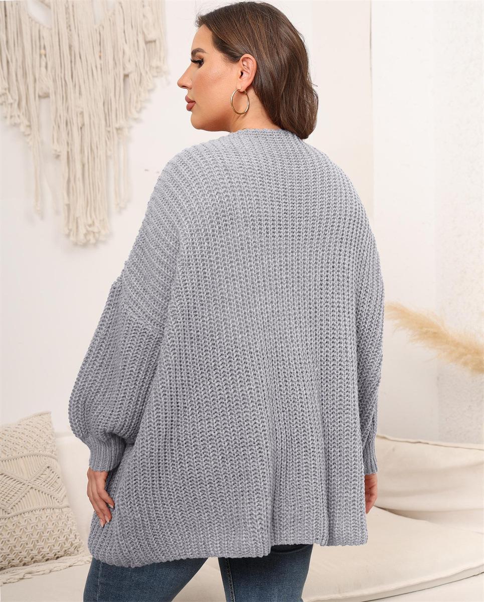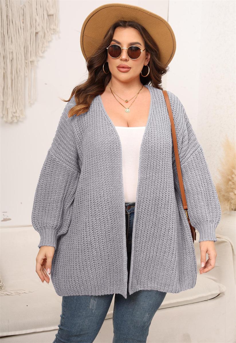 Abrigo de mujer, suéter tejido holgado de longitud media, de talla grande europea y americana, con mangas abullonadas y doble bolsillo, cárdigan
