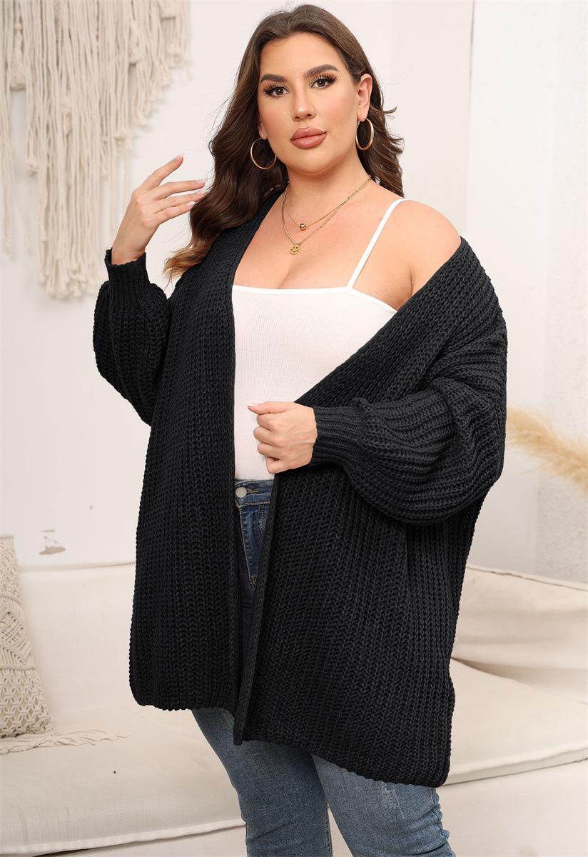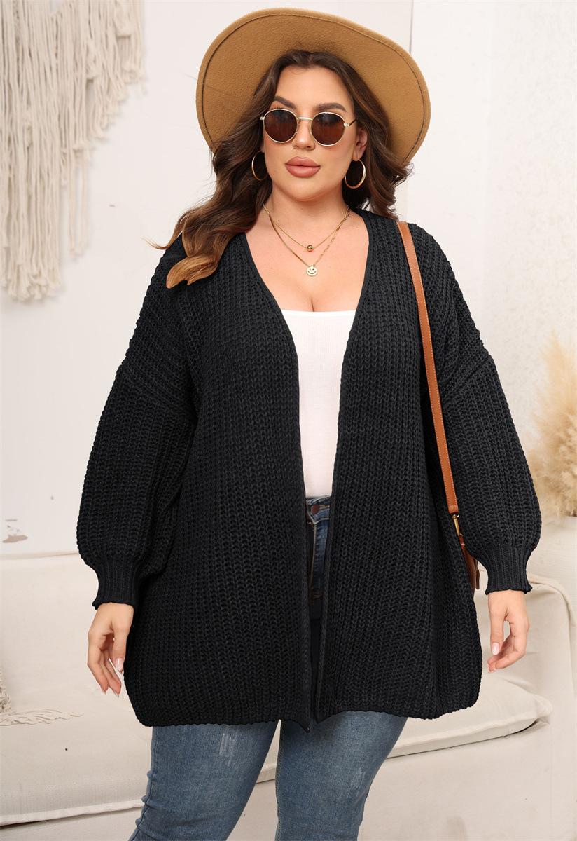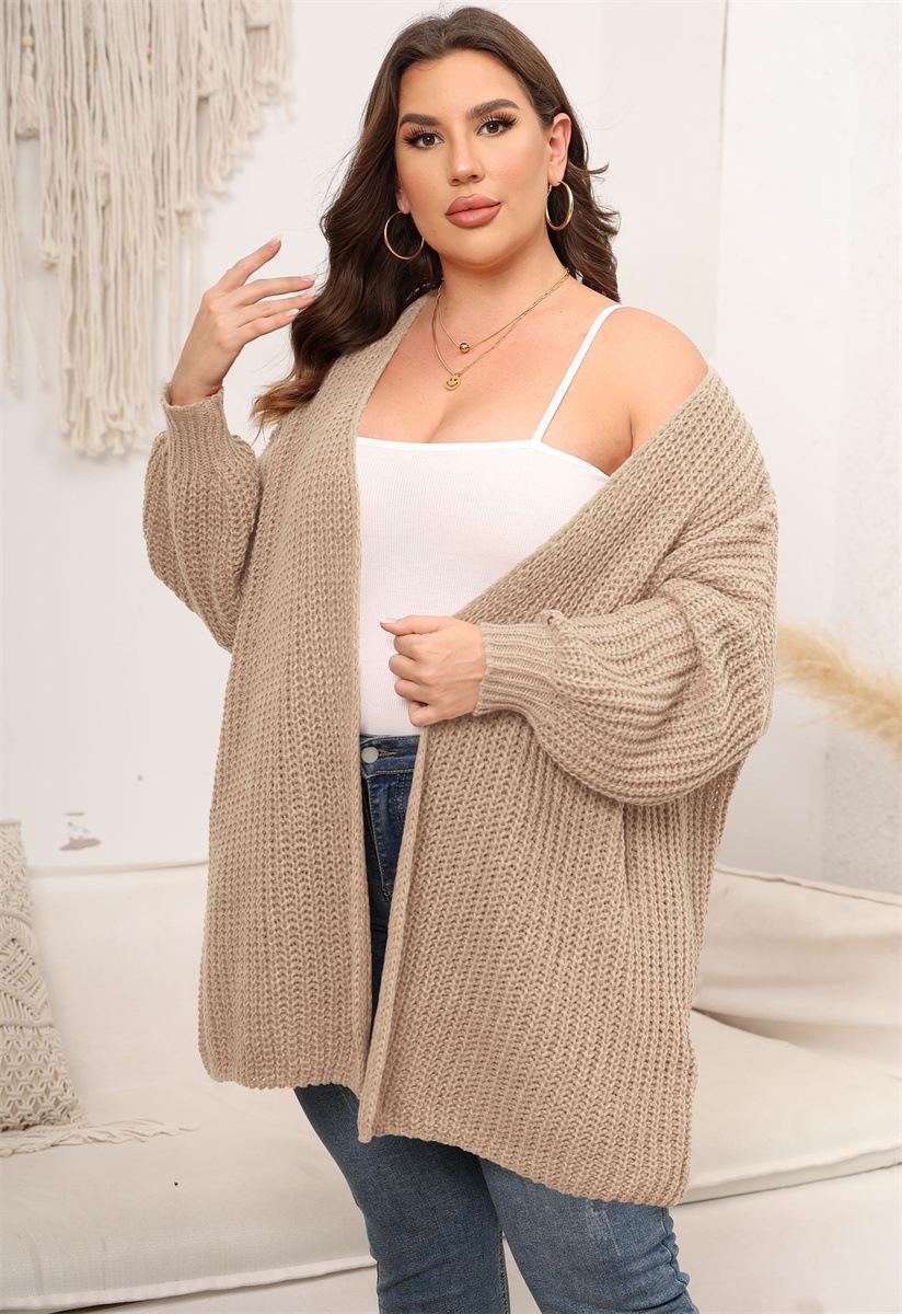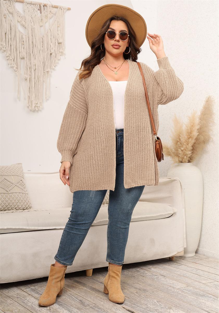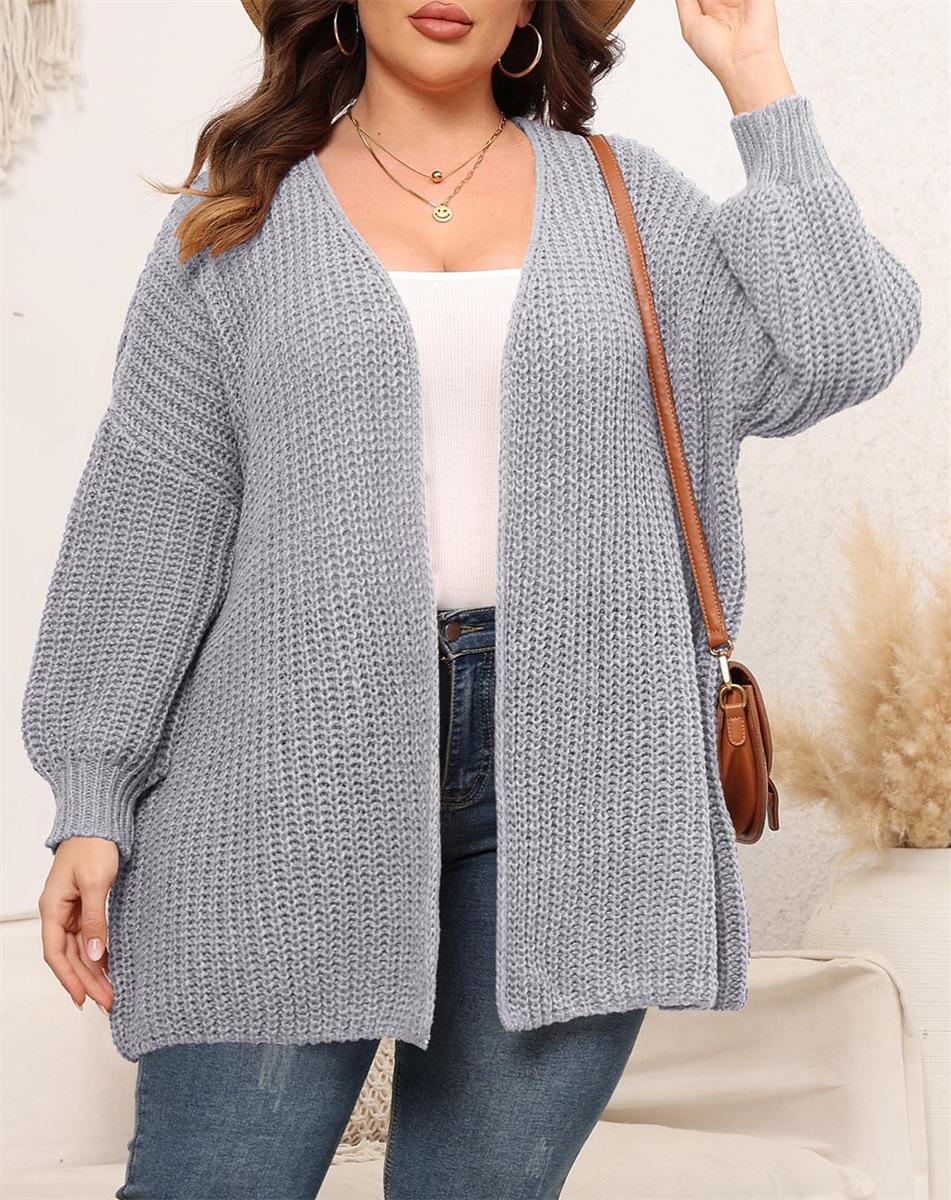Abrigo de mujer, suéter tejido holgado de longitud media, de talla grande europea y americana, con mangas abullonadas y doble bolsillo, cárdigan