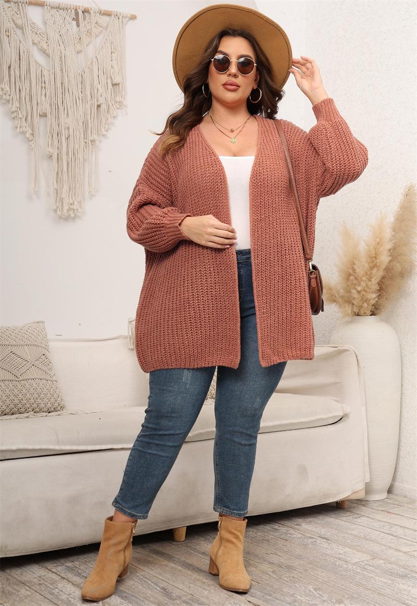Cárdigan de mujer, estilo europeo y americano transfronterizo, suéter tejido de talla grande para mujer, mangas de murciélago, bolsillos dobles grandes, chaqueta informal 633