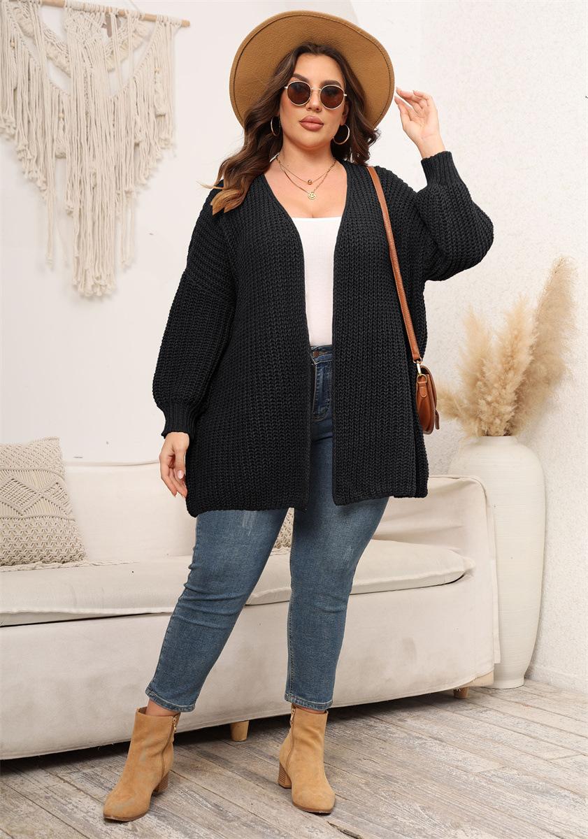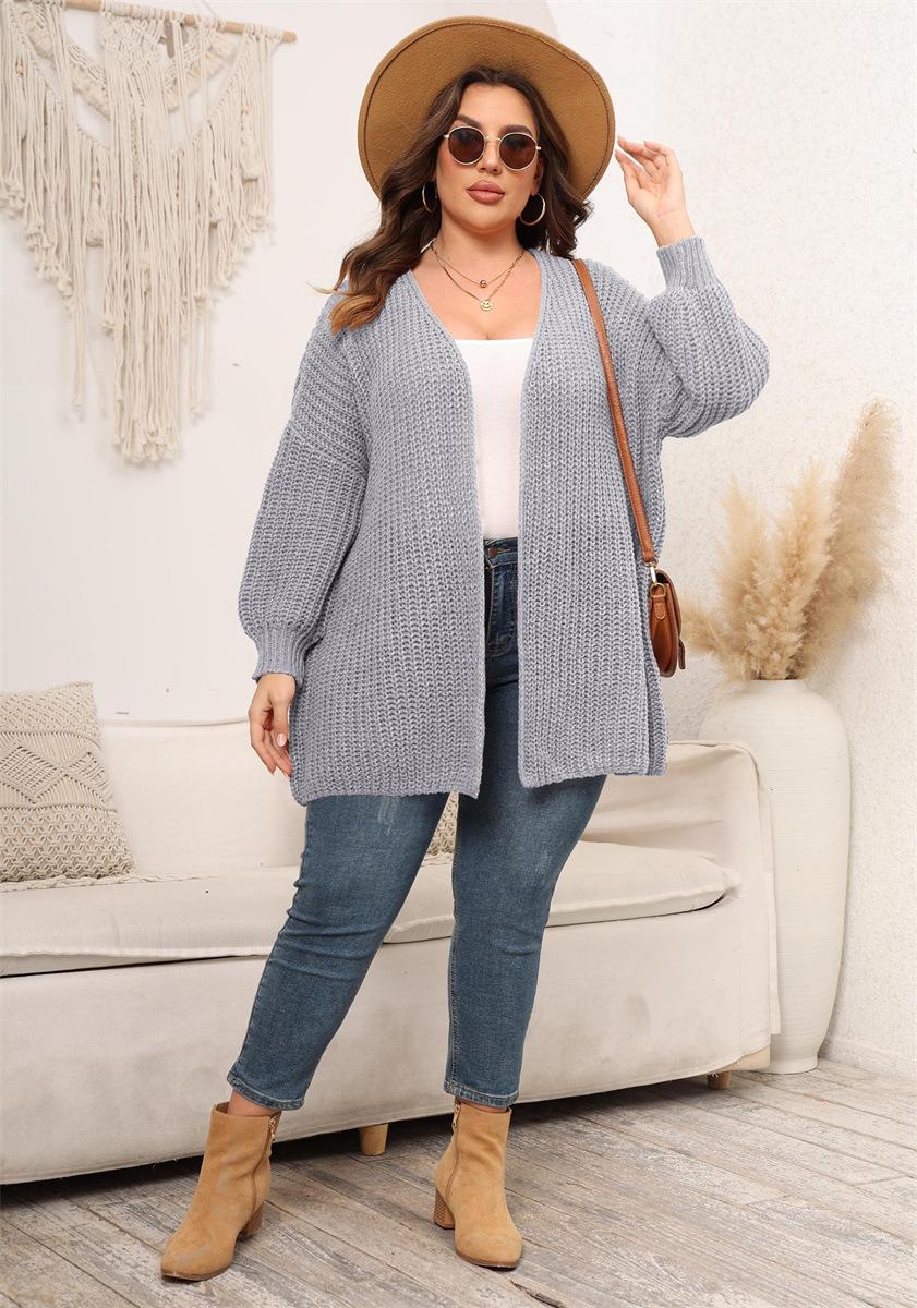 Abrigo de mujer sencillo y de moda transfronterizo europeo y americano de talla grande para mujer tejido desabotonado suéter de longitud media cárdigan 200955
