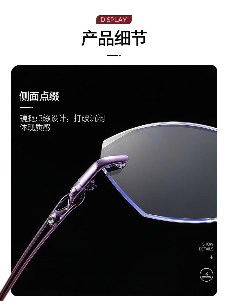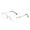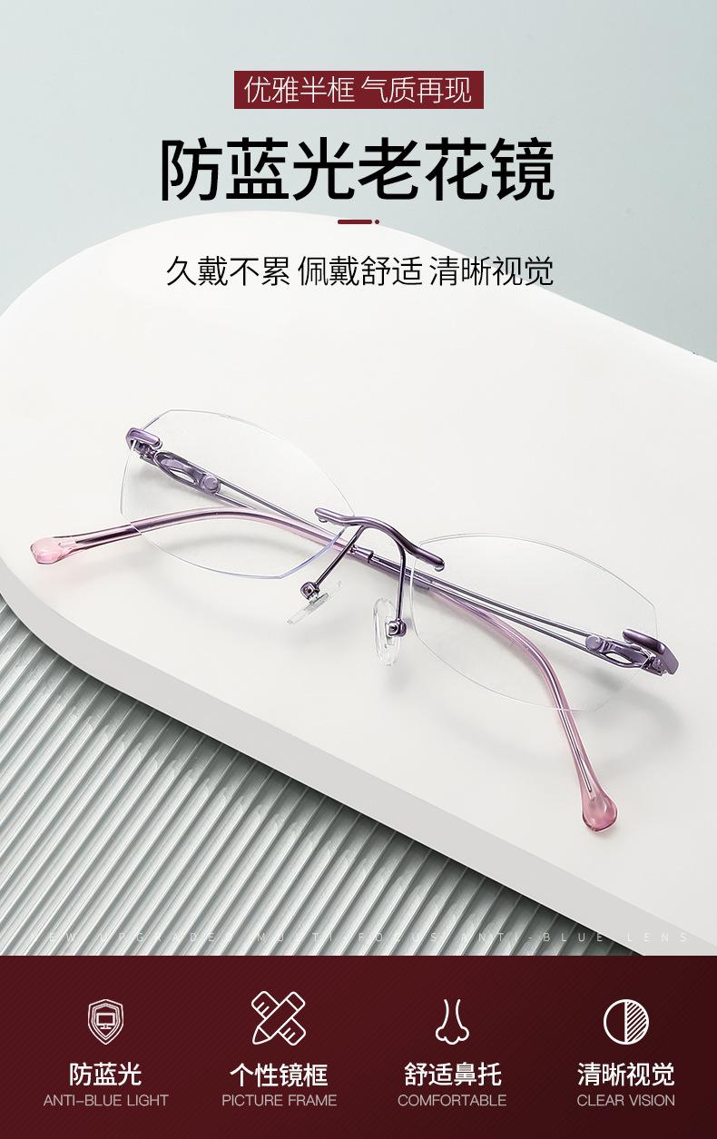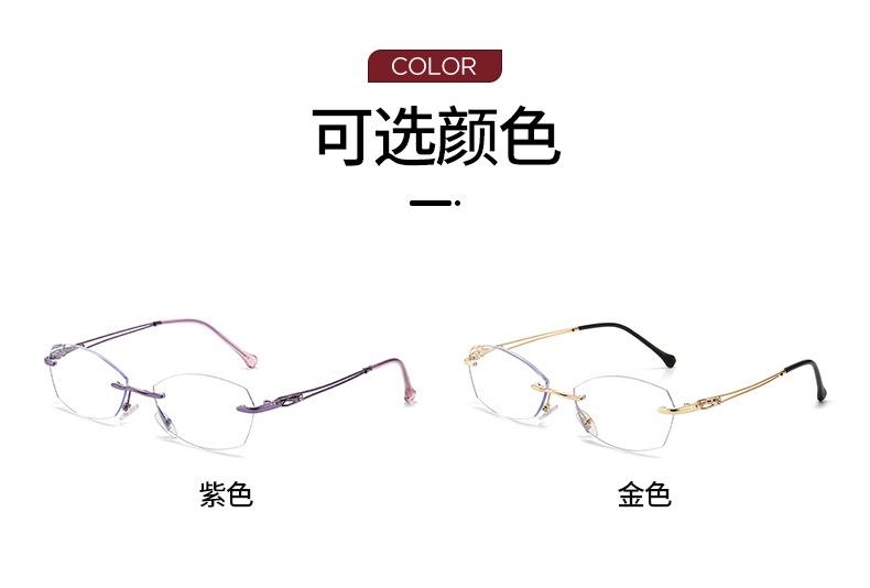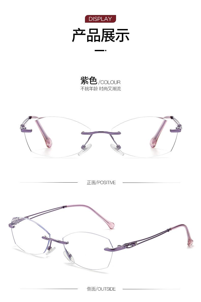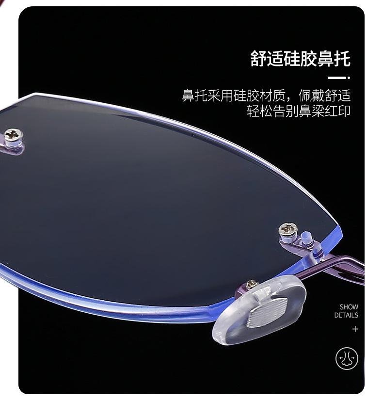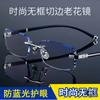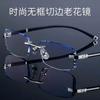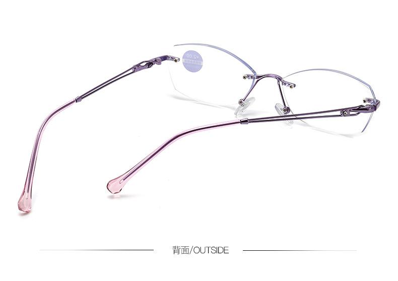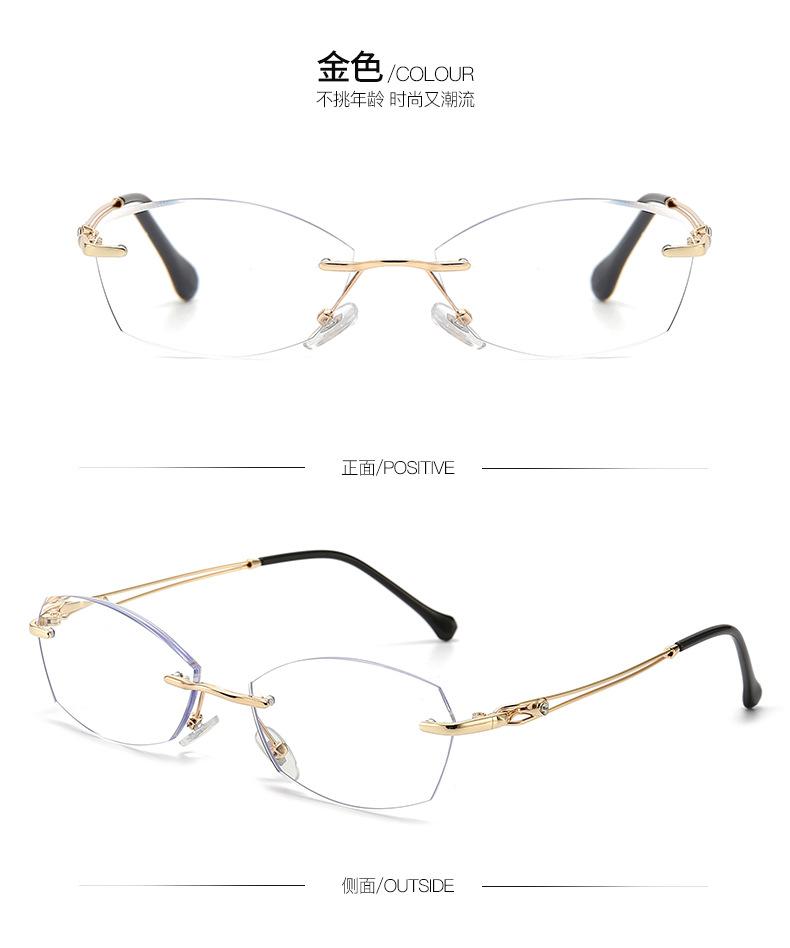 Nuevas gafas de presbicia sin marco de alta gama para mujer con borde de corte de diamante y luz azul, gafas de presbicia antiedad de moda para mujer.