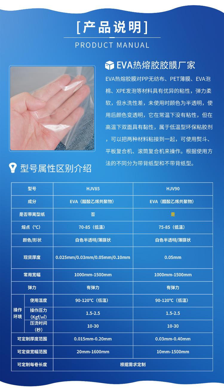 El fabricante de películas adhesivas termofusibles EVA es un tipo de adhesivo para calzado y productos de espuma de esponja. Este producto es una película adhesiva termofusible de baja temperatura. Se utiliza principalmente para calzado y películas adhesivas elásticas para productos de espuma. Somos su fabricante. Ofrecemos diversas especificaciones y también podemos personalizarlo según sus necesidades. Le invitamos a comprar.