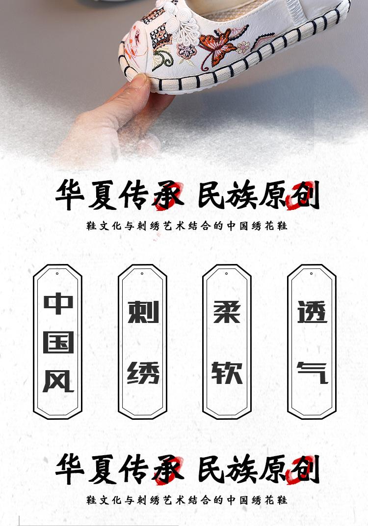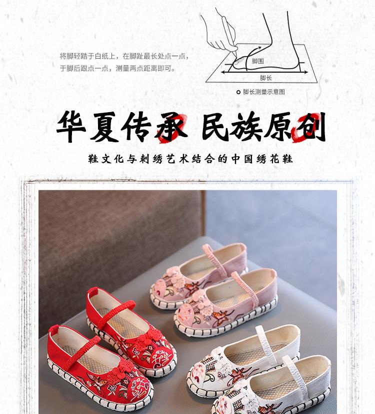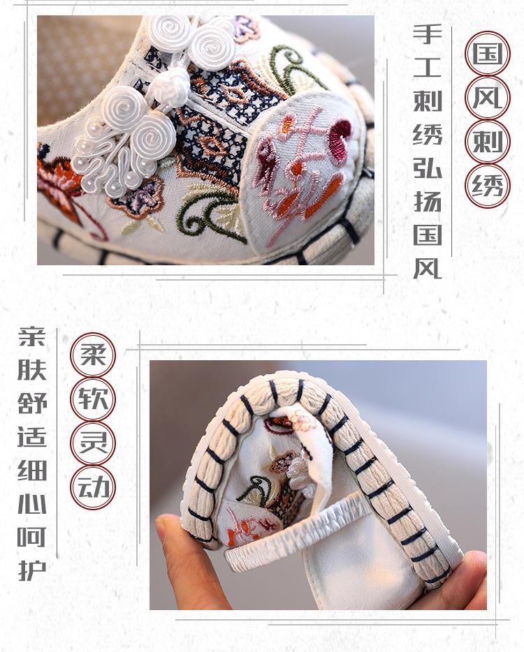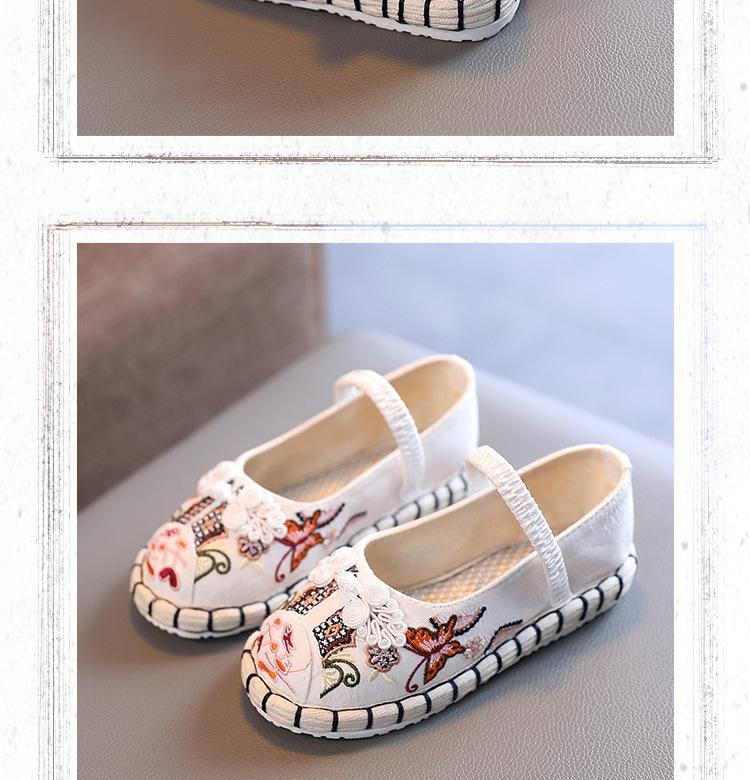 Zapatos Bordados para Niñas Primavera y Otoño Nuevos Falda de Bebé Zapatos para Niños Disfraz Antiguo Zapatos de Tela del Viejo Beijing Zapatos para Niños de la Dinastía Han