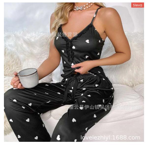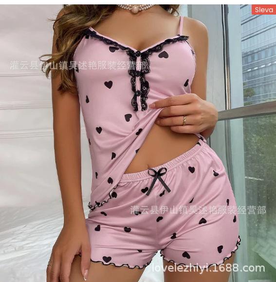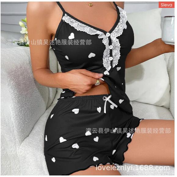 Pijama nuevo de cuello en V para mujer, de comercio exterior europeo y americano, cómodo para el hogar, con encaje y tirantes, pantalones cortos, traje
