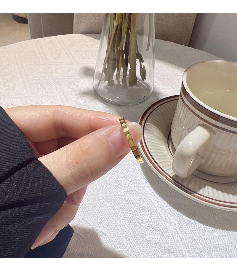 Anillo de Círculo Completo de Corazón de Acero de Titanio para Mujer Diseño Nicho Ins Popular Simple Versátil Anillo Liso Anillo para Dedo Índice No se Desvanece