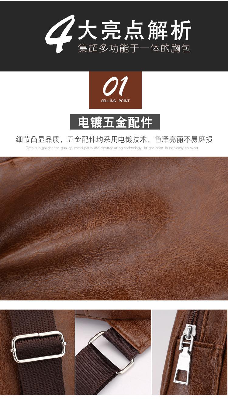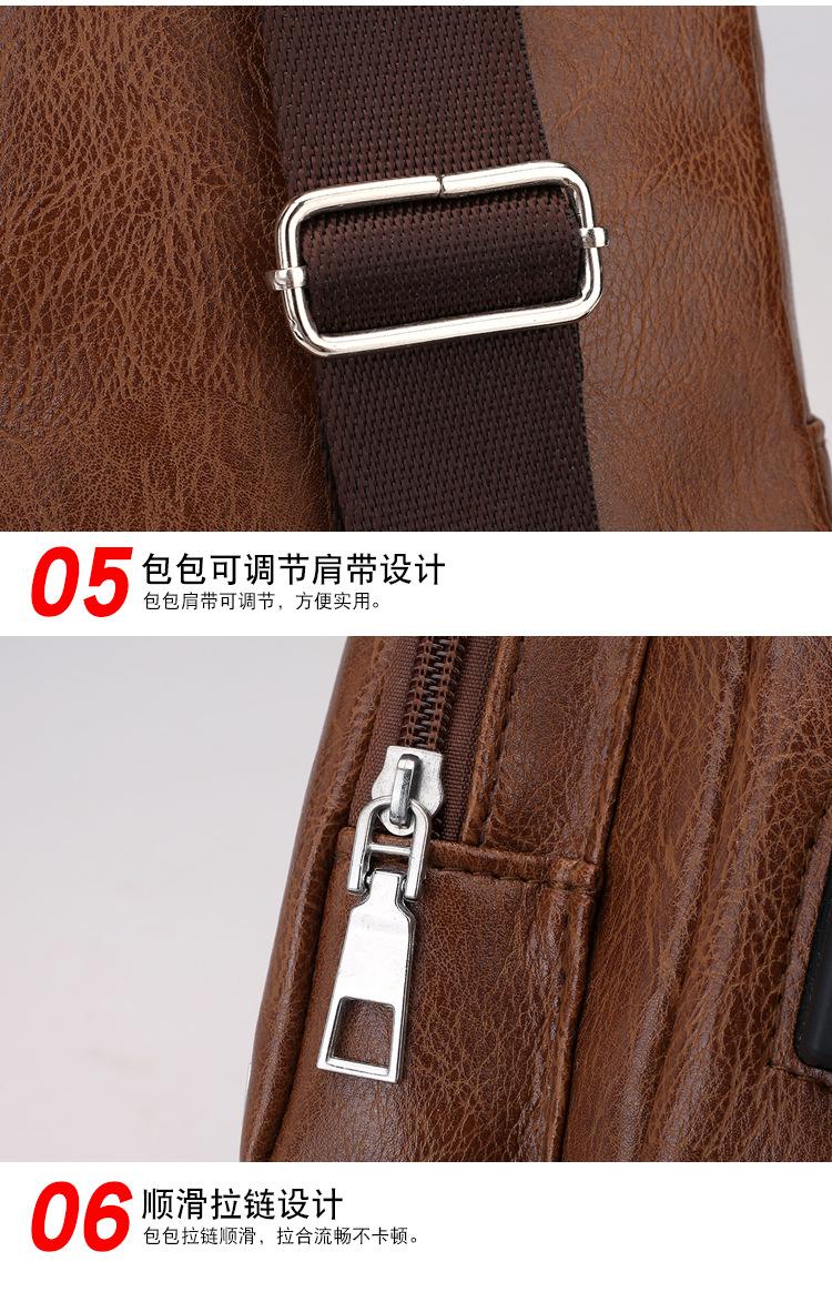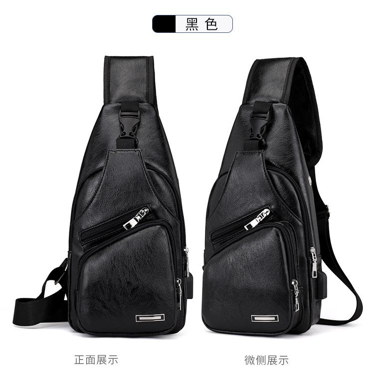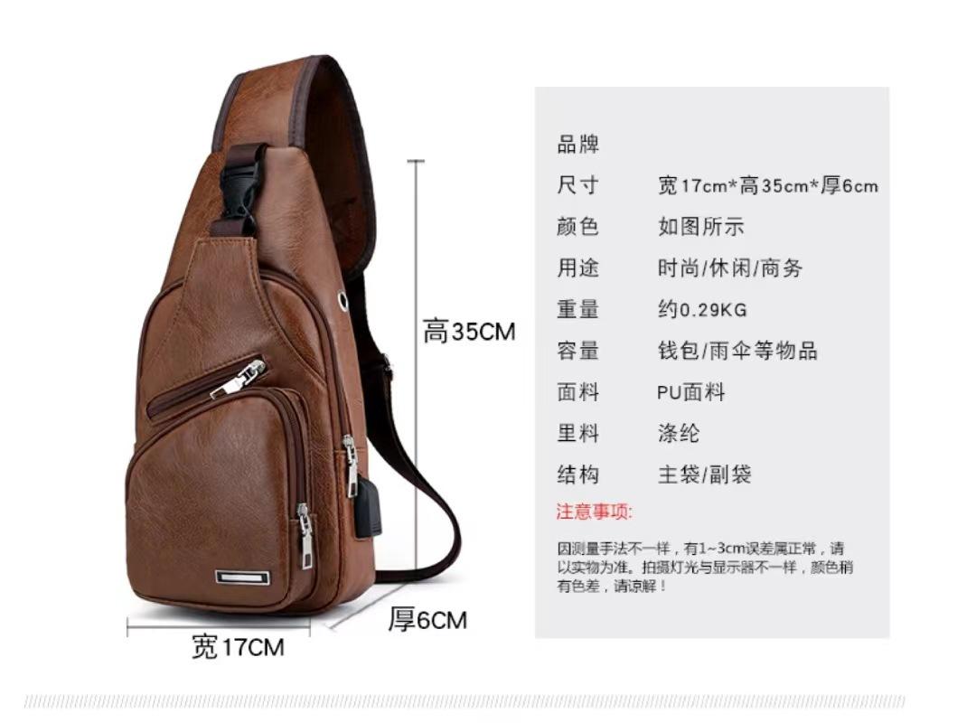 Bolsa de Pecho con Carga por Cable de Datos USB 2025 Otoño Nuevo Bolso Cruzado de Moda Casual Pu Deportes al Aire Libre Bolso de Hombre