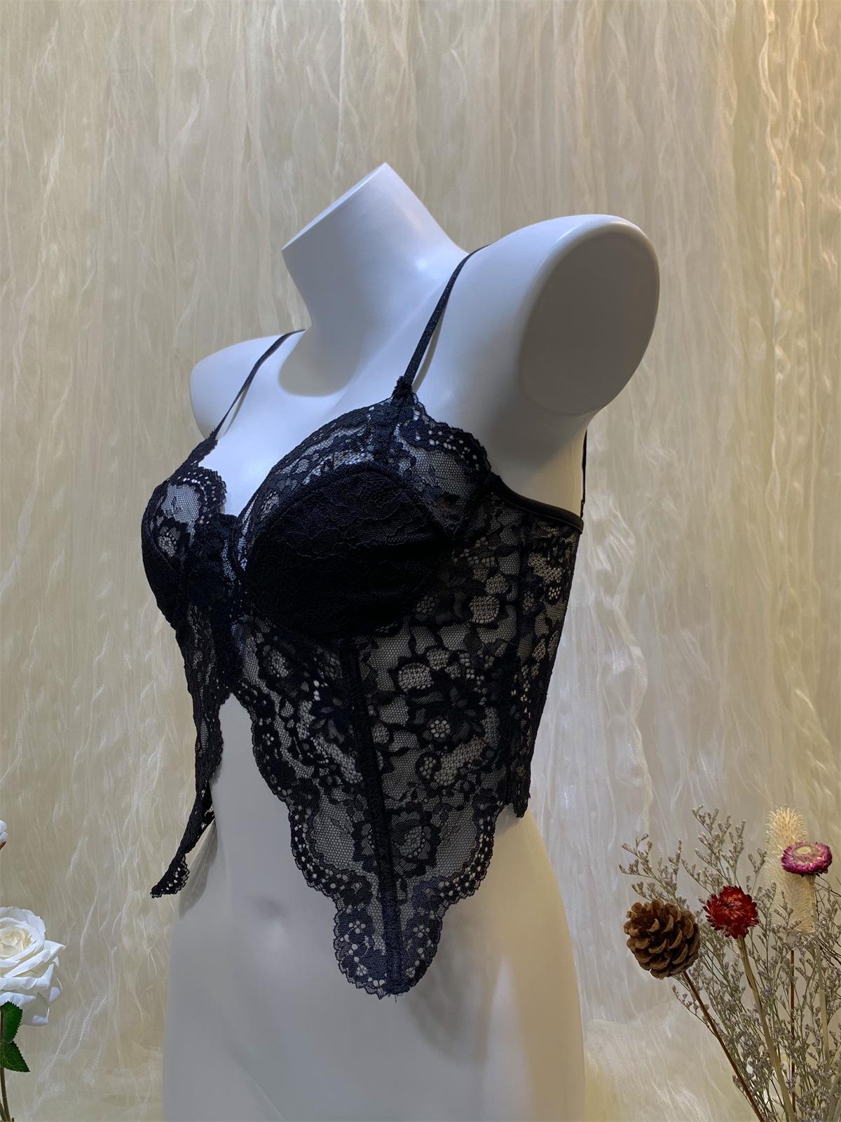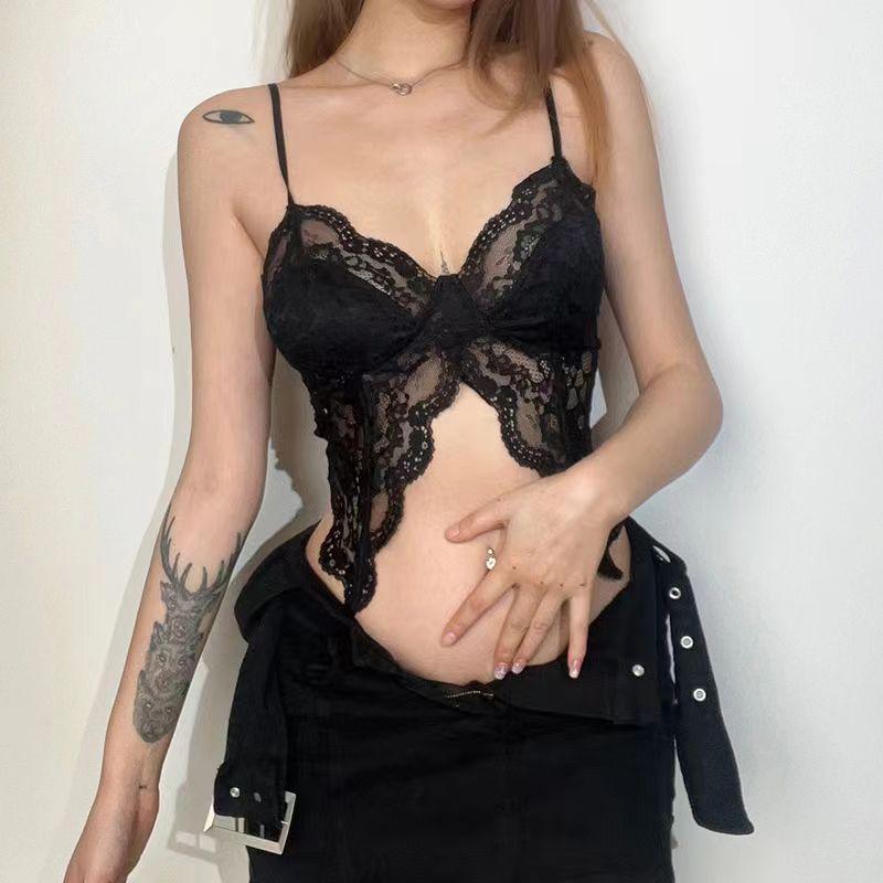 Camisola de mujer con cuello en V, estilo europeo y americano, sexy, de encaje negro, estilo oscuro, 2023, venta al por mayor