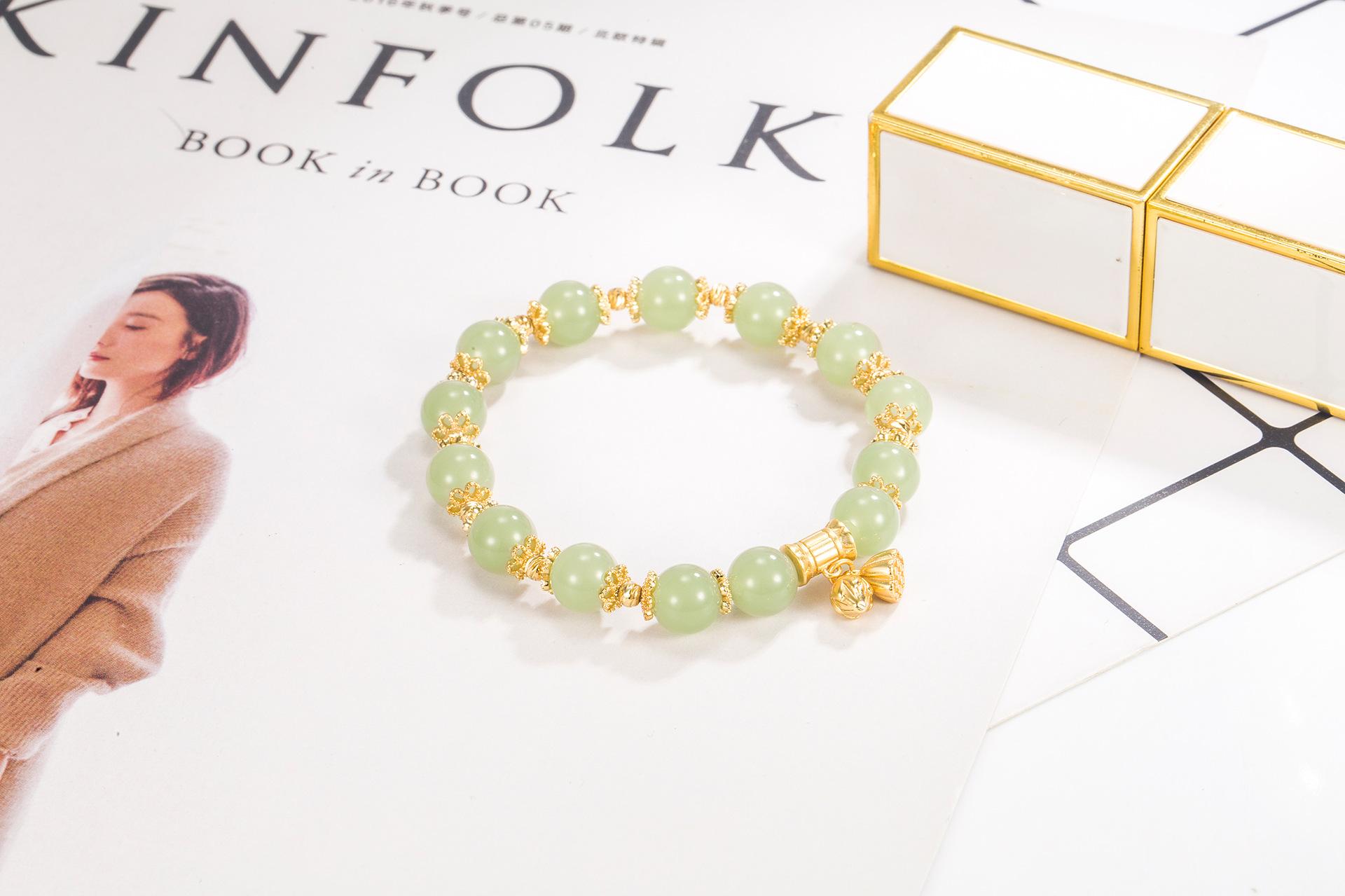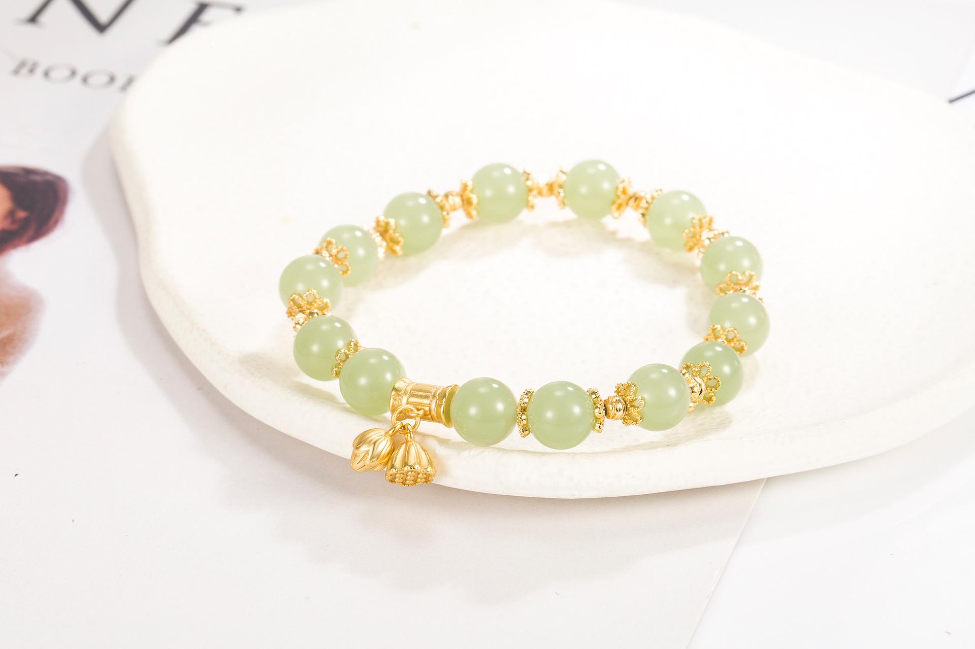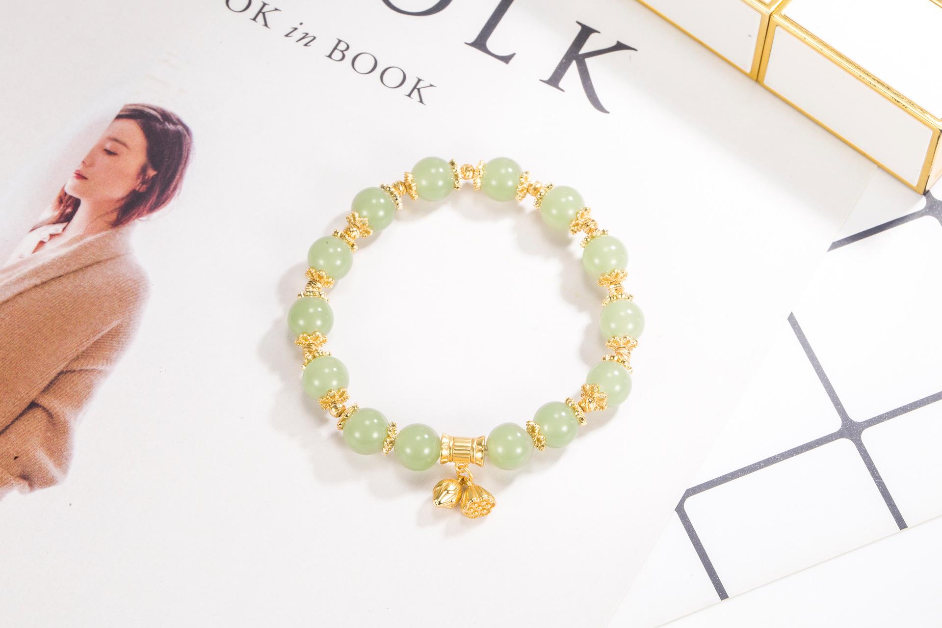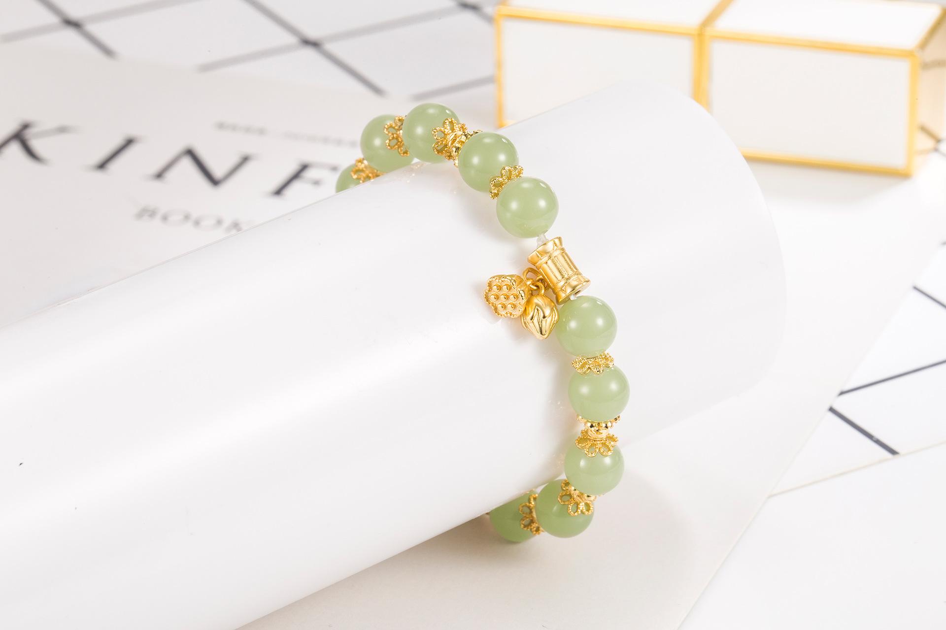 Pulsera de Ramas Doradas y Hojas de Jade Jade de Hetian Pulsera de Bambú Hojas Pequeñas Pulsera de la Felicidad de Dos Generaciones Regalo de Cumpleaños para Novia