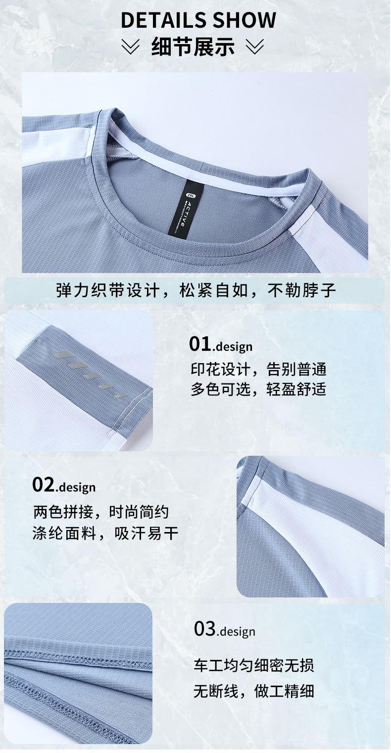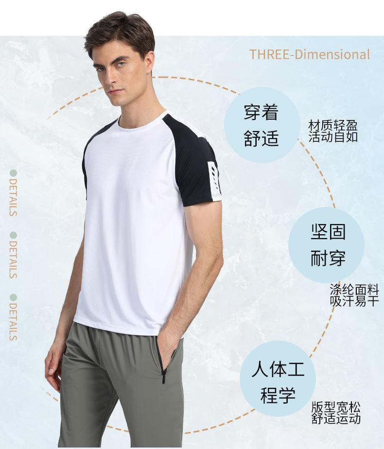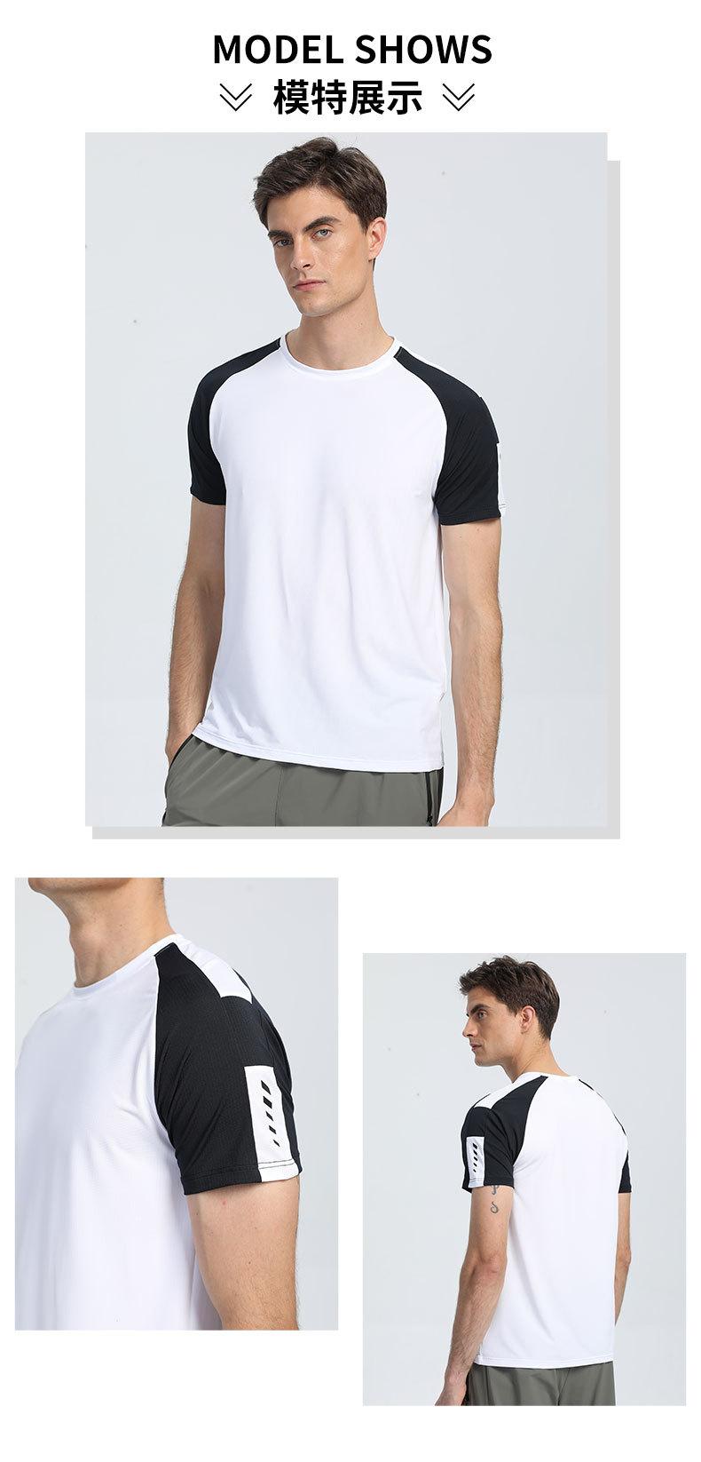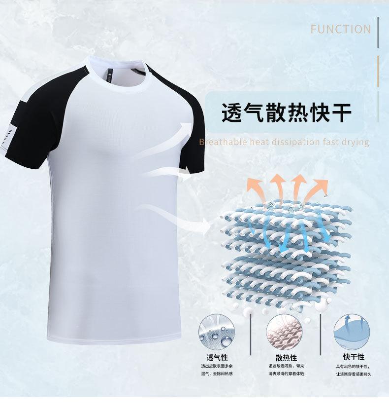 Nueva camiseta deportiva con cuello redondo y costuras para hombre, estampada, transpirable, absorbente del sudor, para fitness, de manga corta, para exteriores, de verano, de secado rápido.