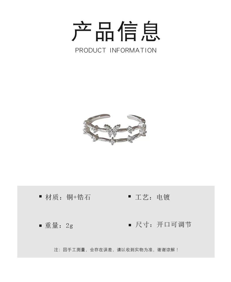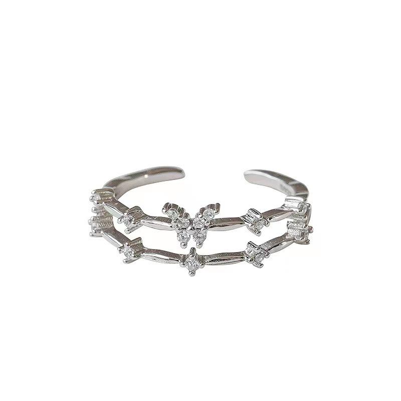 Anillo Abierto de Doble Capa de Mariposa para Mujer, Lujo Ligero, Diamante Flash, Estilo Frío ins, Diseño Simple de Nicho, Joyería