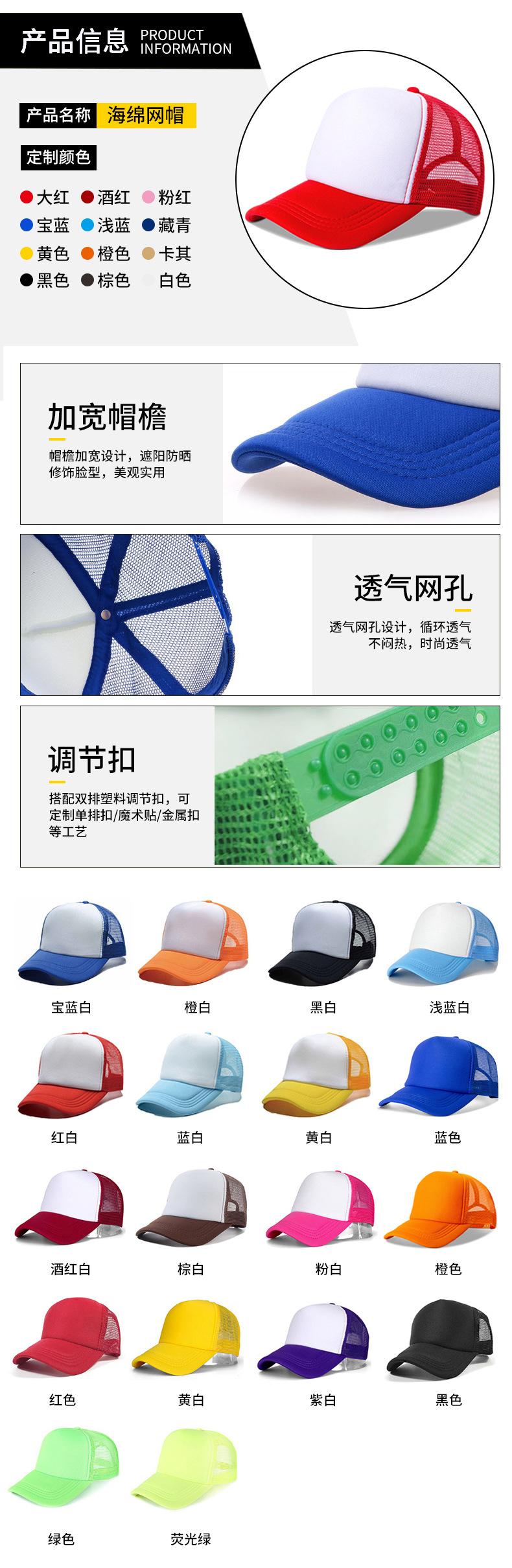Gorra de béisbol, gorra de red de esponja, gorra publicitaria, venta al por mayor, impresión de logotipo personalizado, gorra de voluntario, gorra para el sol