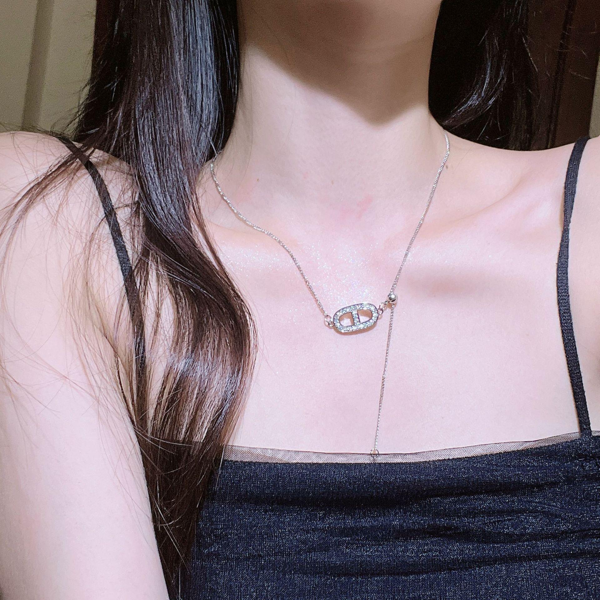 2025 Nuevo Collar Deslizante Nariz de Cerdo Diamante Flash para Mujer de Alta Calidad Estilo Frío Diseño Nicho Collar Cadena Clavícula