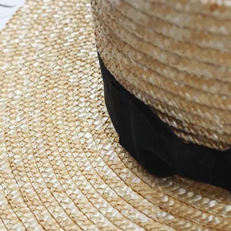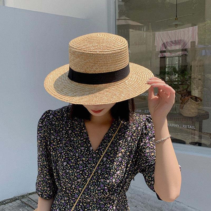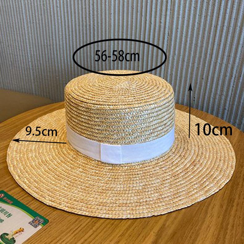 Caperucita Roja Mismo Estilo Paja de Trigo Fina Ala Ancha de 9 cm Sombrero de Paja de Copa Plana Parasol para Mujer Forma Sombrero de Copa Celebridad de Internet Protector Solar Playa