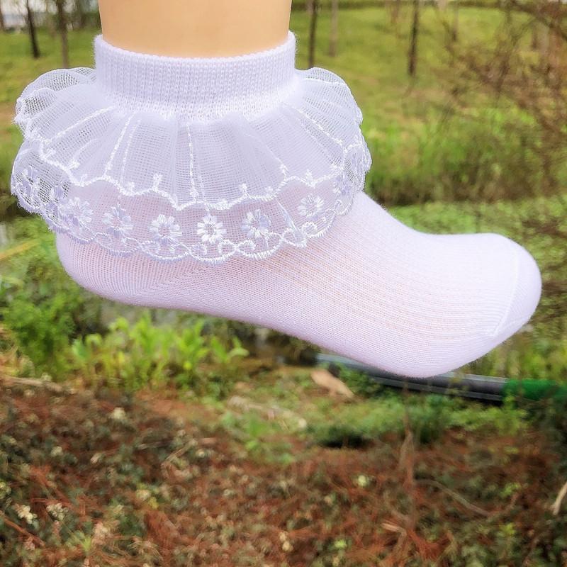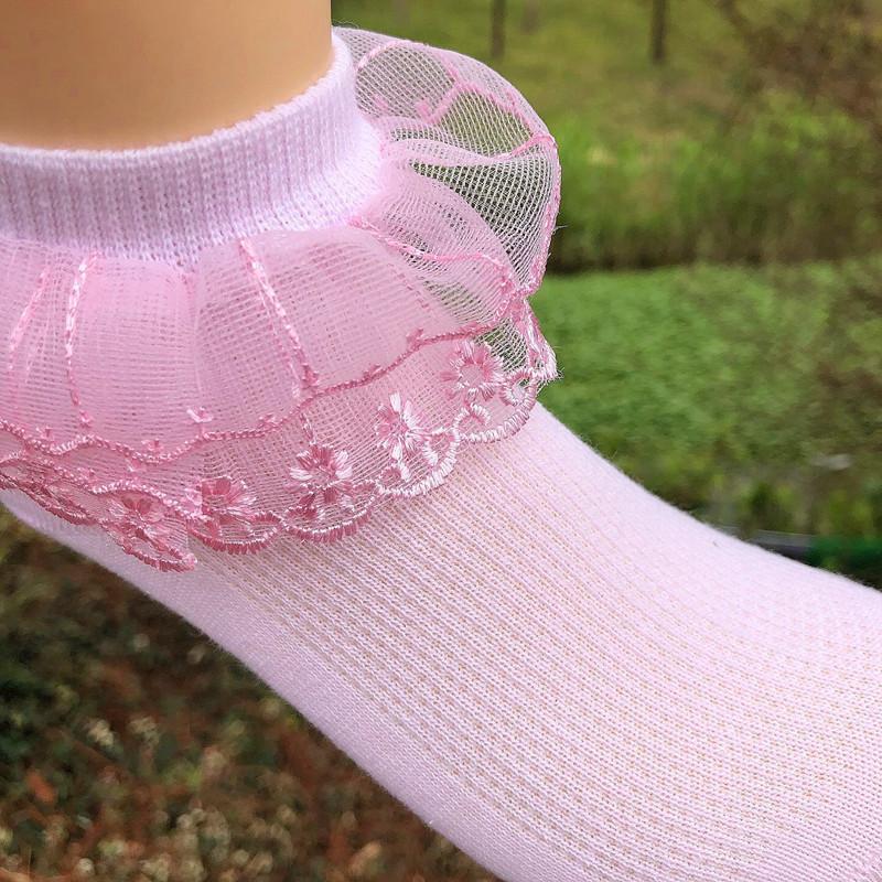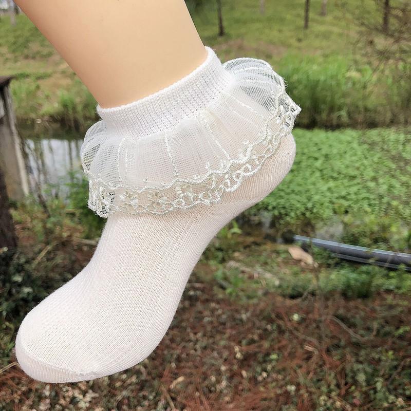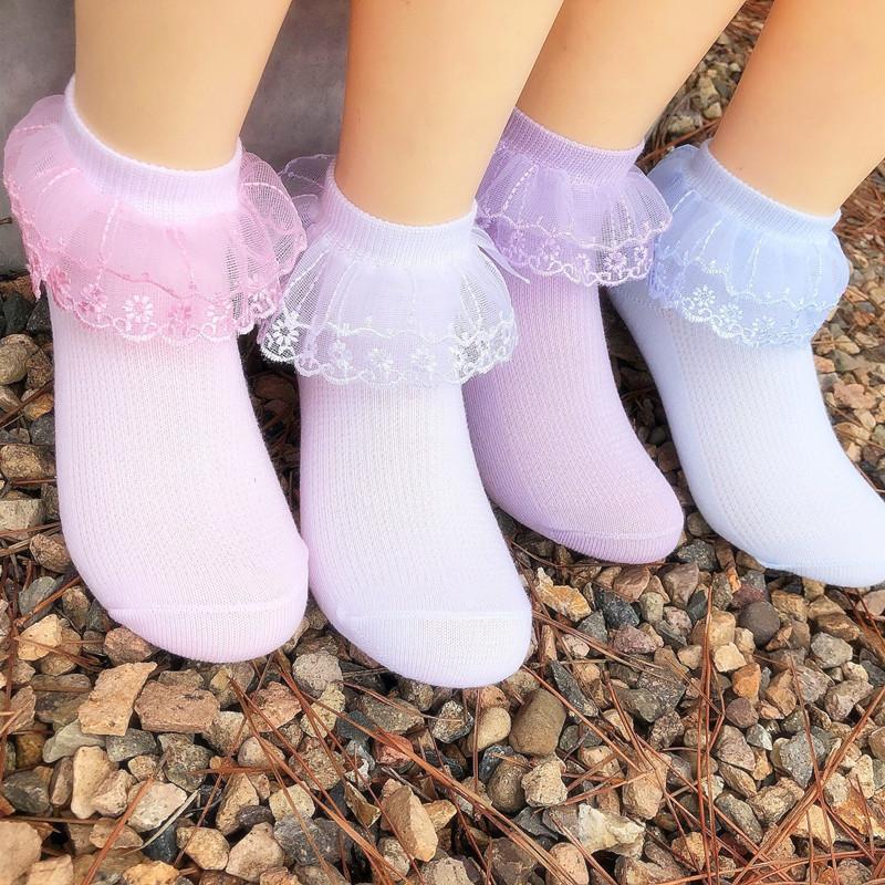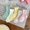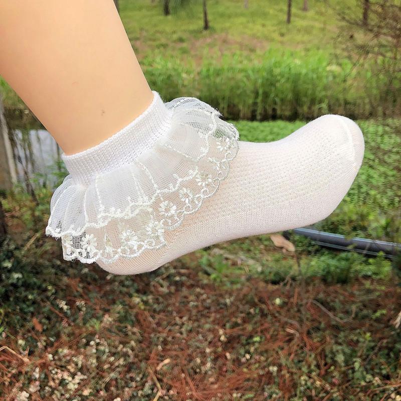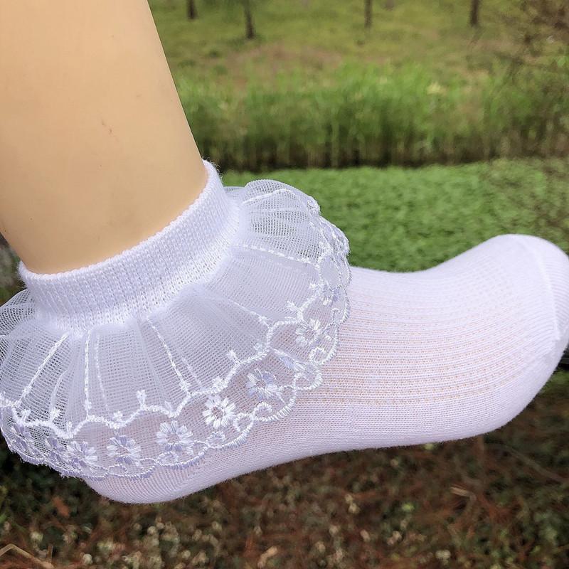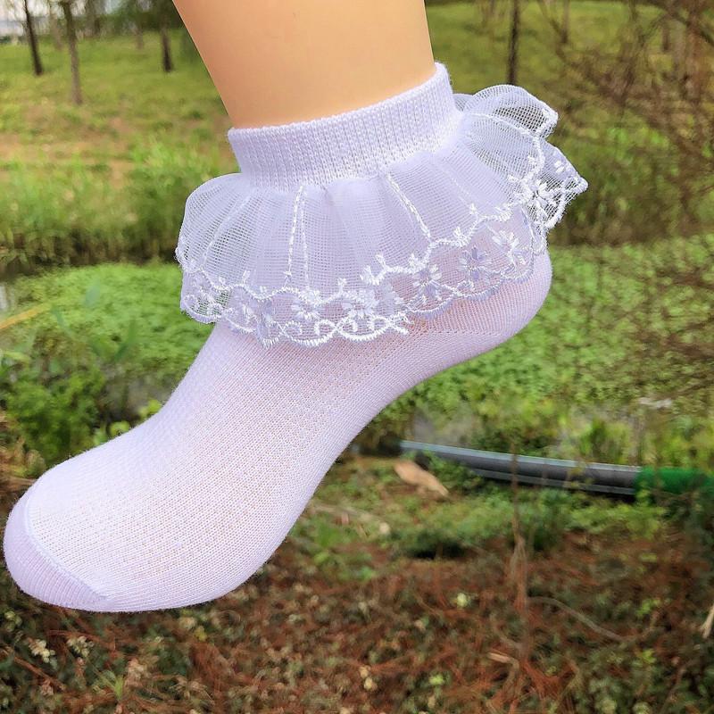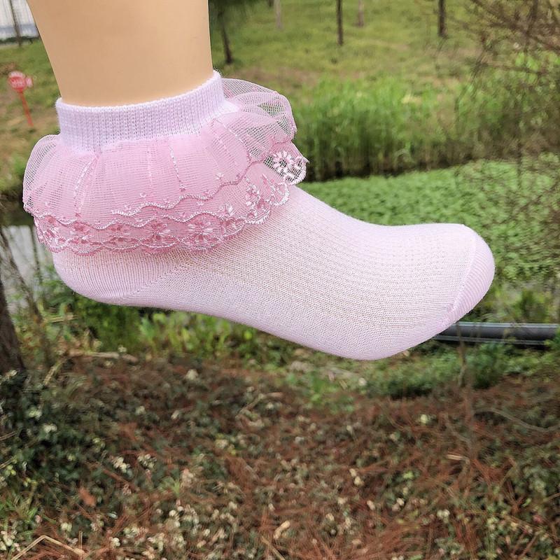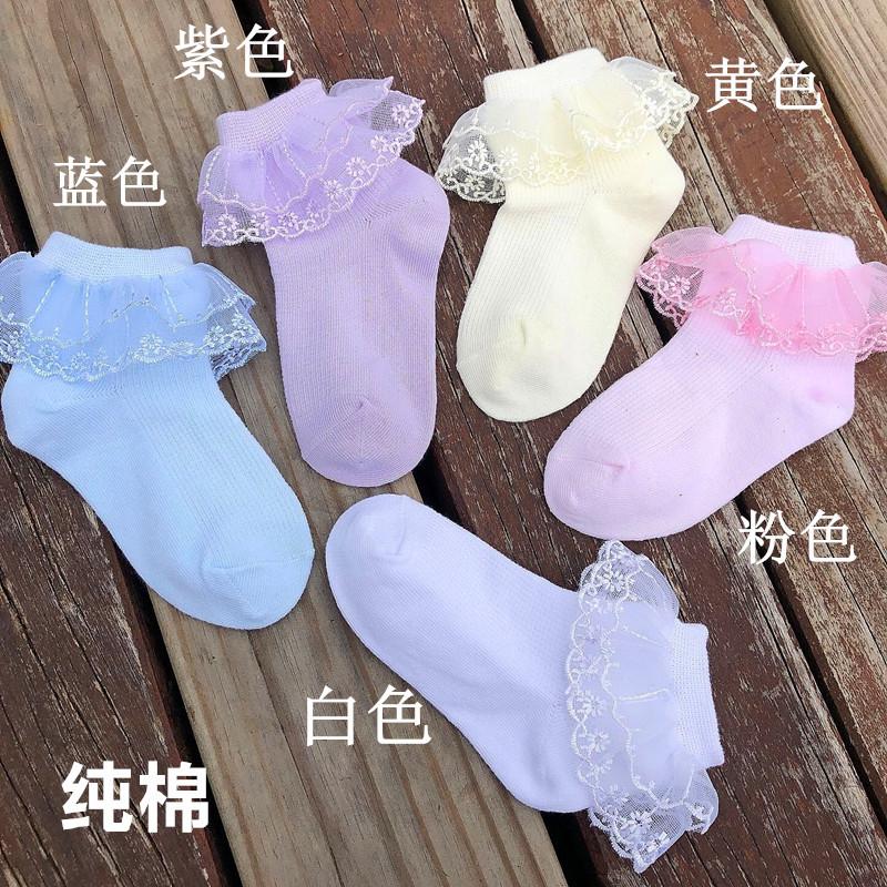 Calcetines de Encaje de Doble Capa de Algodón de Color Puro para Niños Grande, Mediano y Pequeño Talla para Niños Calcetines al por Mayor Malla Media y Alta de Fábrica A82