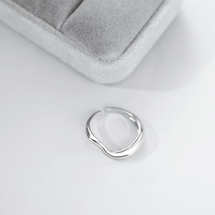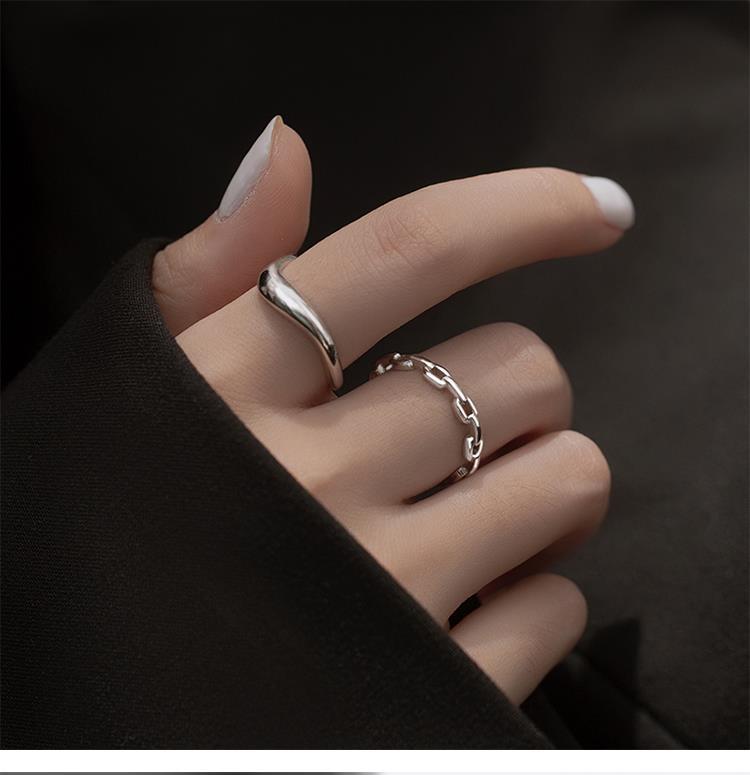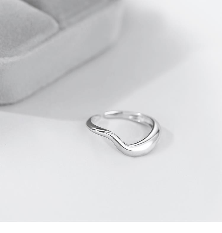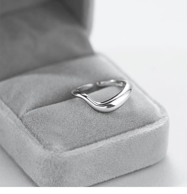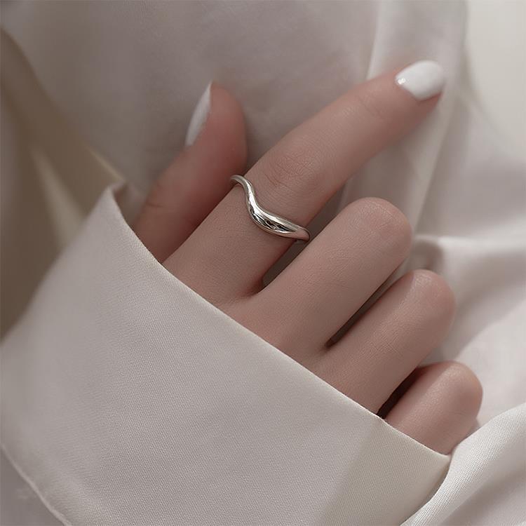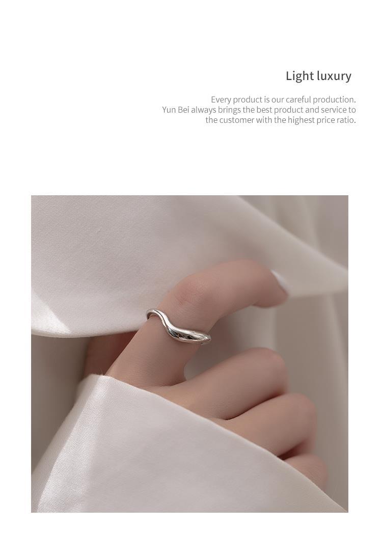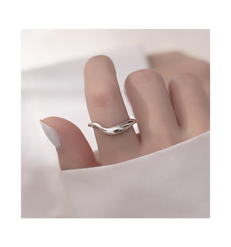Anillo de Onda Simple para Mujer Estilo Coreano Moda Personalidad Combinable Elegante Plata S925 Anillo Abierto Anillo para Dedo Comida Moderno