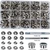 Nombre del producto: 400 piezas (100 juegos) hebilla grande blanca de acero inoxidable de 12 mm (100 juegos en total) + 3 herramientas