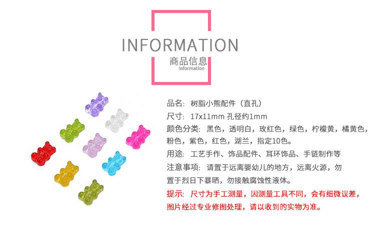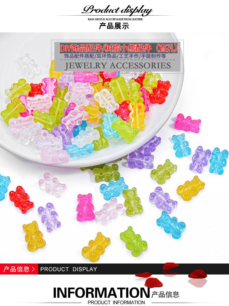 Resina Transparente Agujero Recto Oso DIY Accesorios de Joyería Material de Cuentas Accesorios para Carcasa de Teléfono Móvil Adornos para la Cabeza Pulsera Colgante