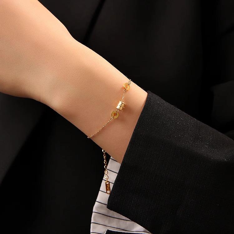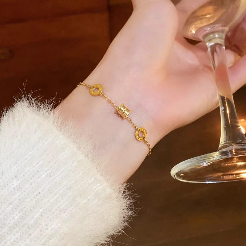 Pulsera de cintura pequeña Dongmen de Corea del Sur 2024 Nuevo nicho de lujo ligero oro 18K retro acero de titanio que no se desvanece