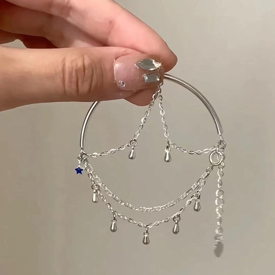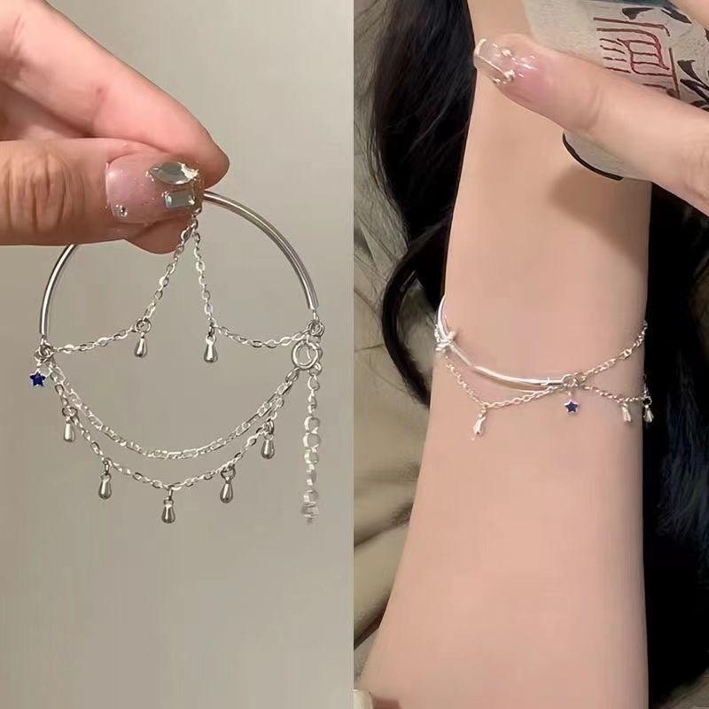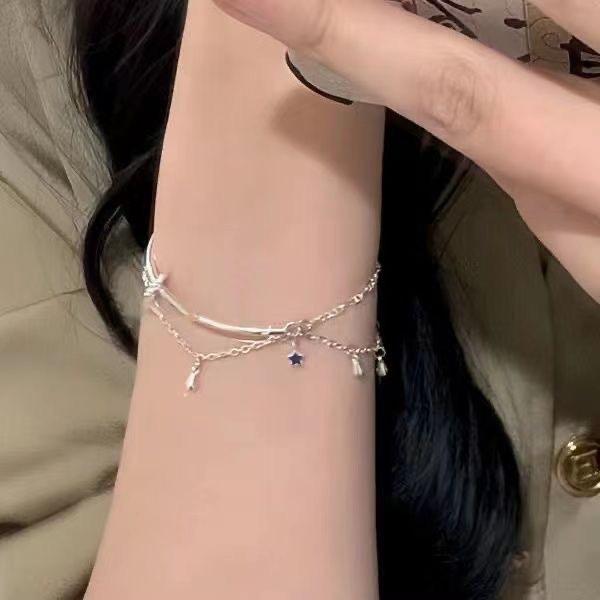 Media Pulsera Estrella pulsera plata azul oscuro Colgante Estrella Gotas de Agua Simple Pulsera de Alta Gama Pulsera de Verano para Mujer