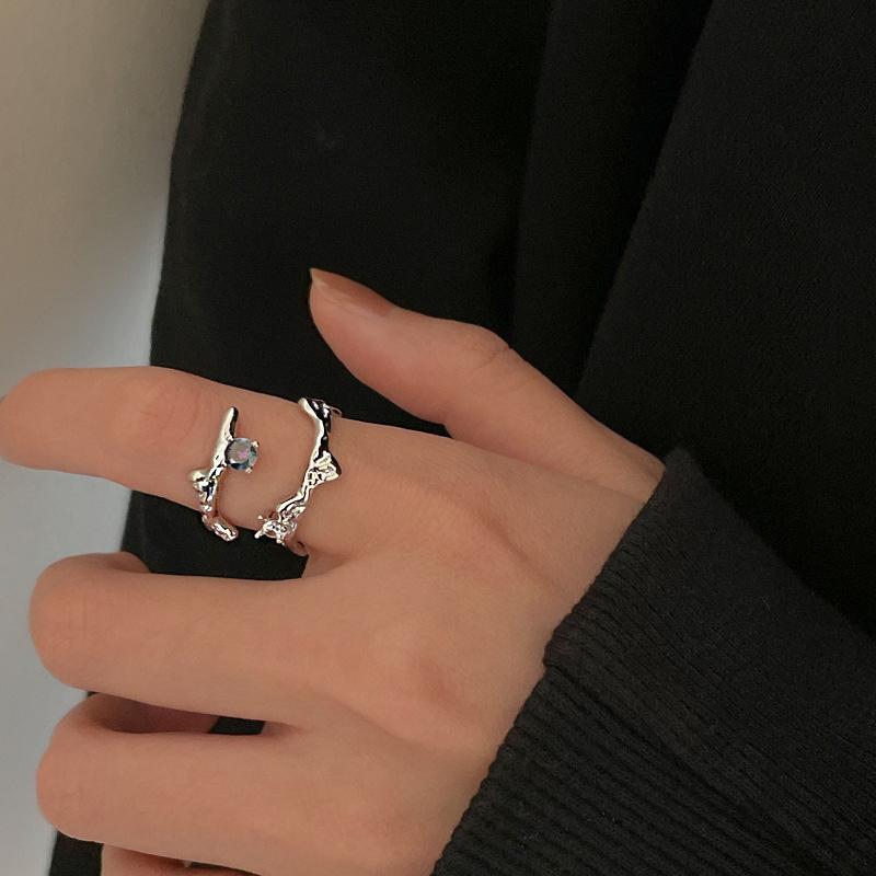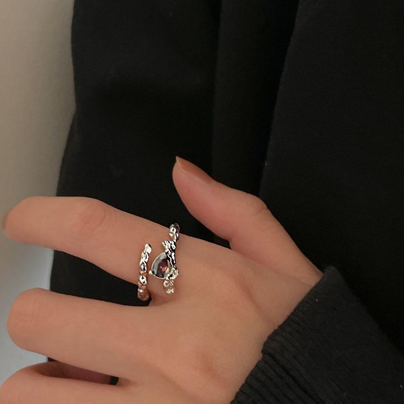 Anillo geométrico irregular para mujer, estilo retro, elegante, plata S925, con forma de gota de agua y circonita, anillo abierto, elegante anillo para dedo.