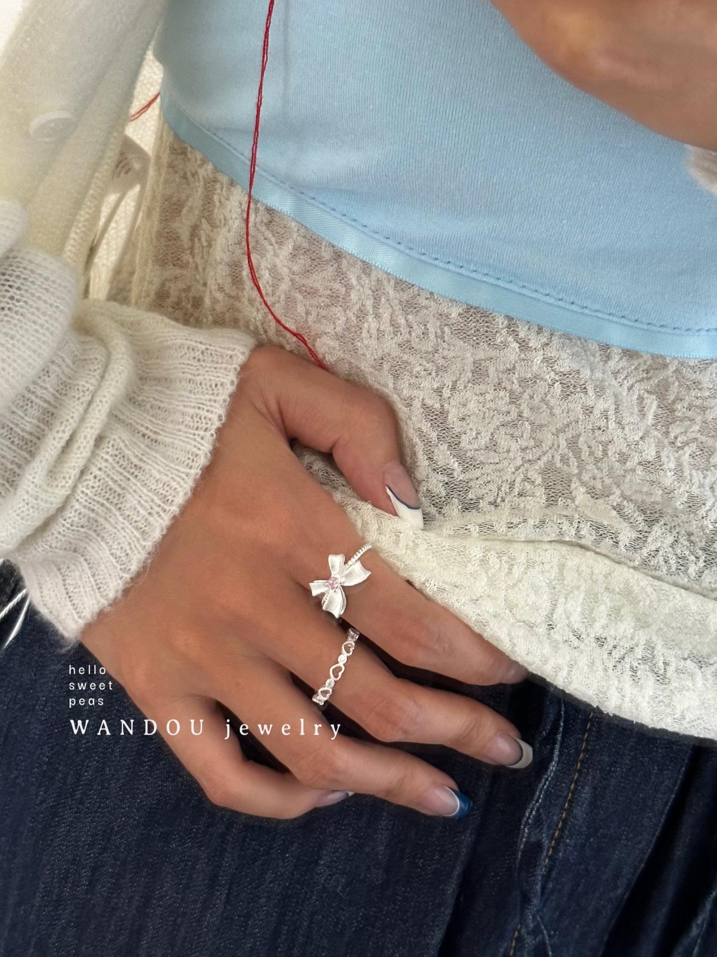 Anillo de Lazo Dulce para Mujer Personalizado Moderno Superpuesto Versátil Plata S925 Anillo Abierto Nicho Ins Anillo para Dedo