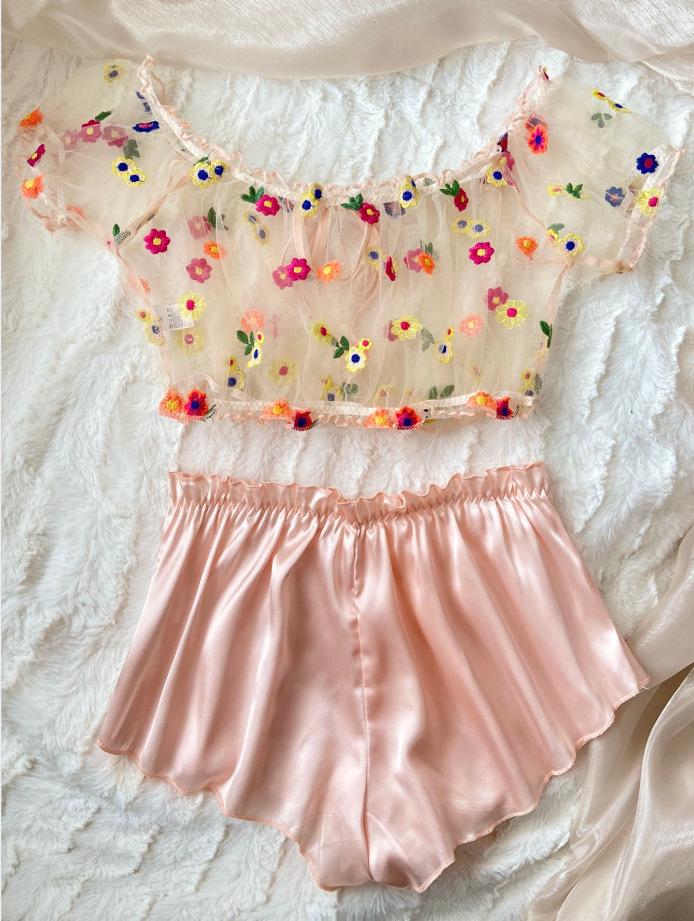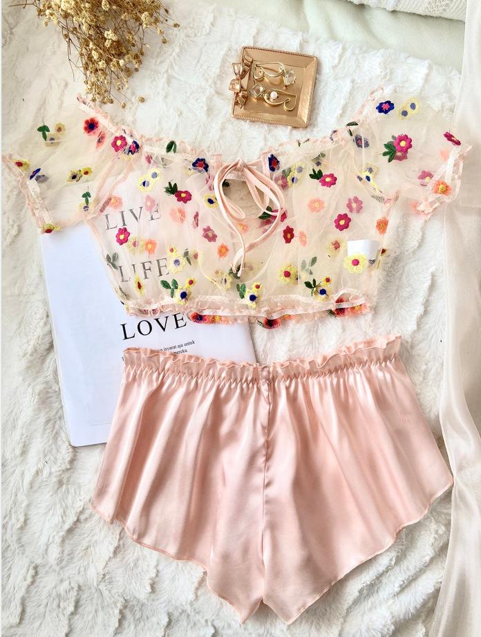 Pijama de encaje cómodo y moderno de dos piezas, estilo europeo y americano, sexy, color negro, para el hogar
