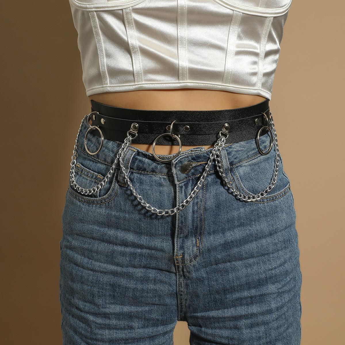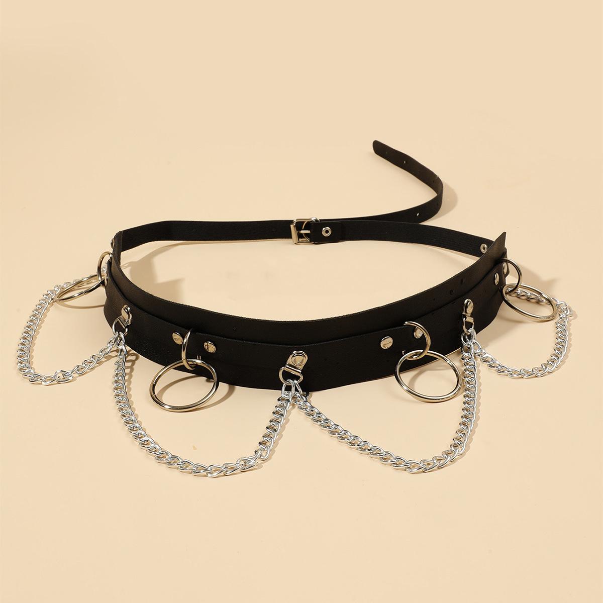 Venta caliente transfronteriza europea y americana, nueva cadena de personalidad de PU Punk Hip-hop, cinturón de cuero exagerado, accesorios de cadena corporal