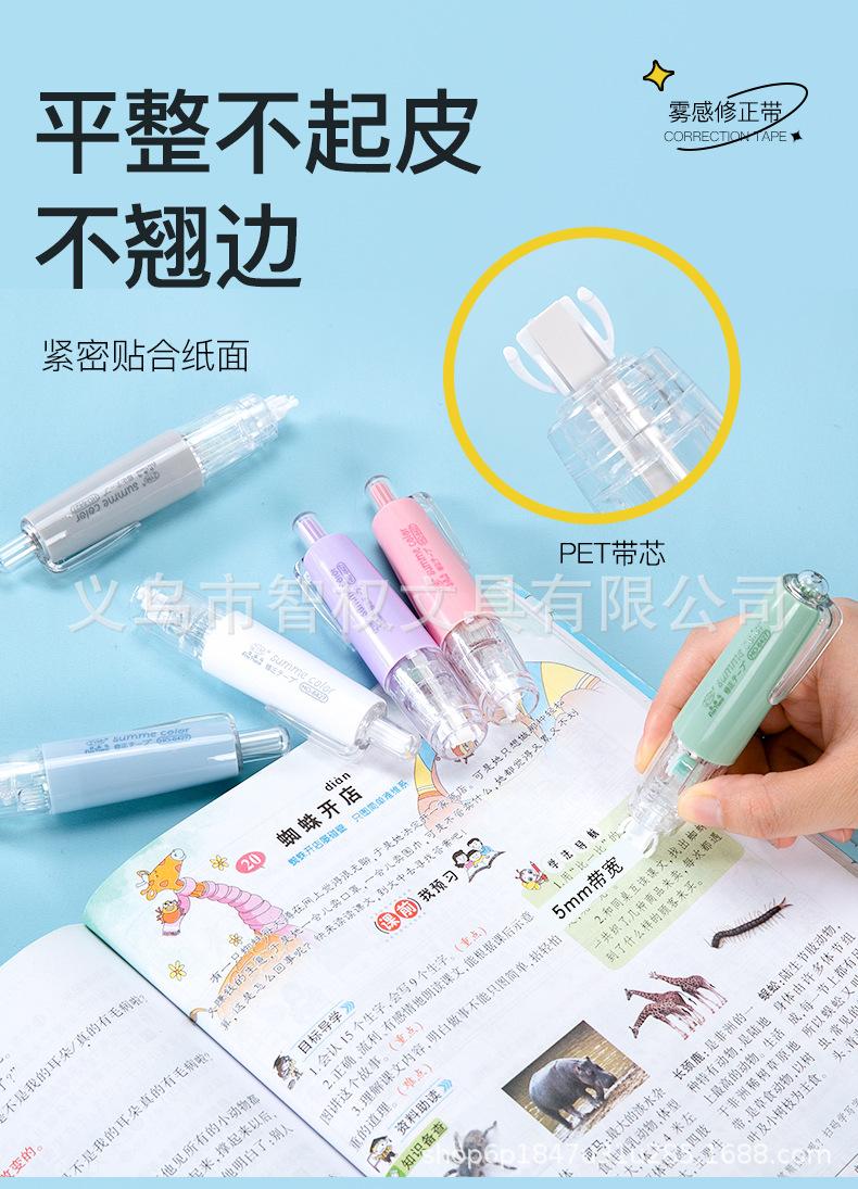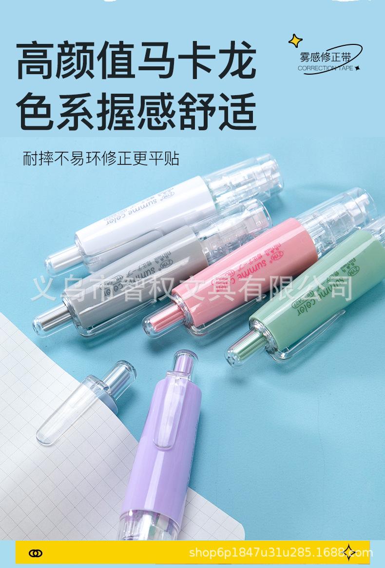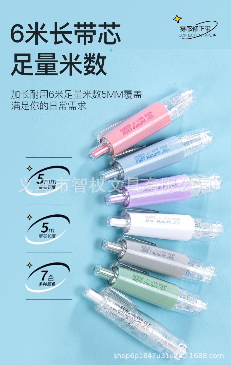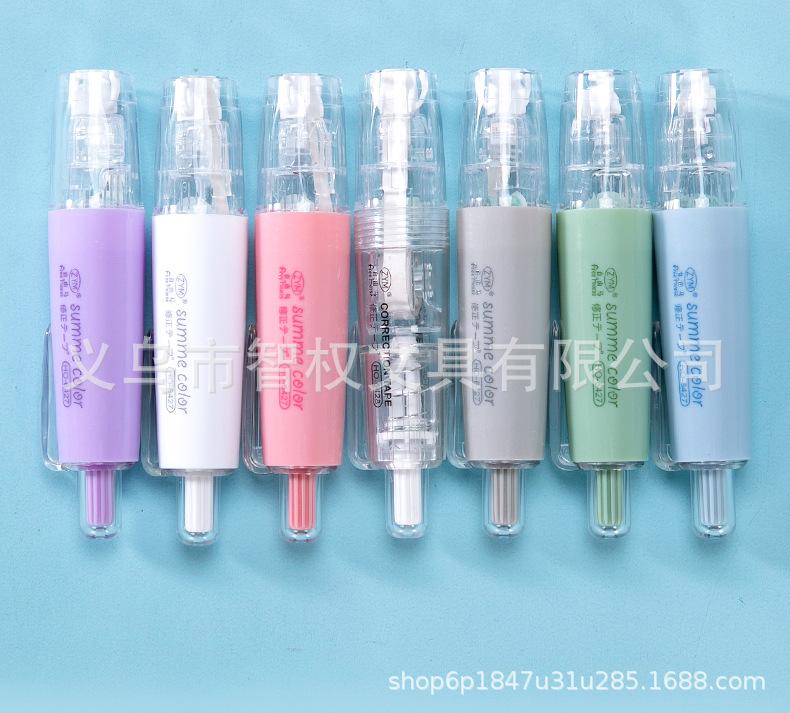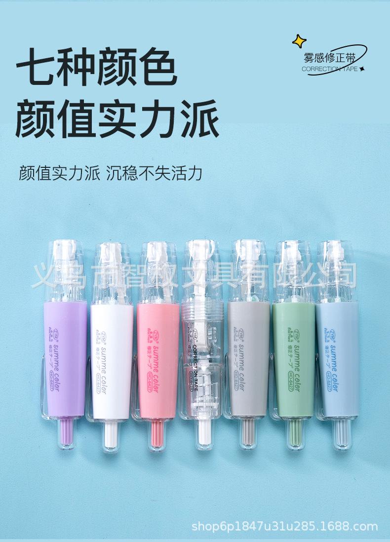 Cinta correctora de tipo pulsador con núcleo reemplazable, cinta correctora silenciosa de siete colores, pequeña y portátil, venta al por mayor de fábrica de cintas correctoras