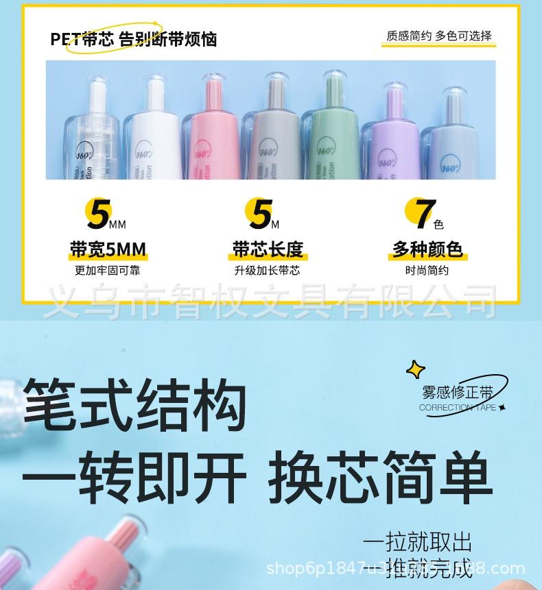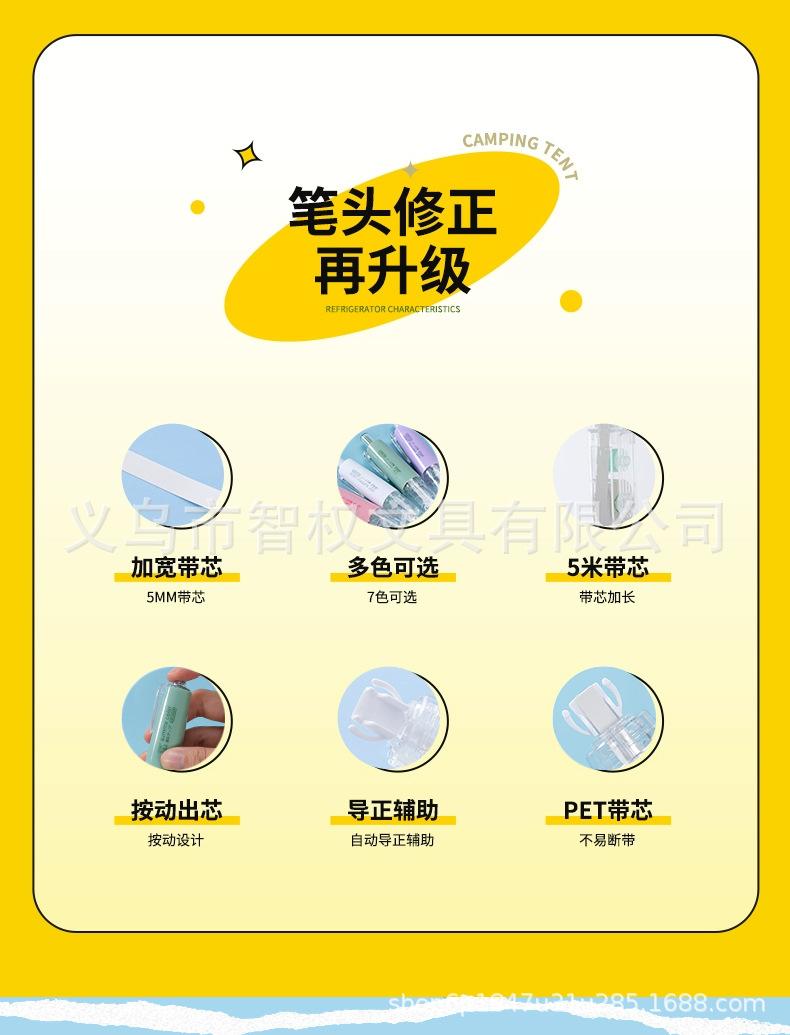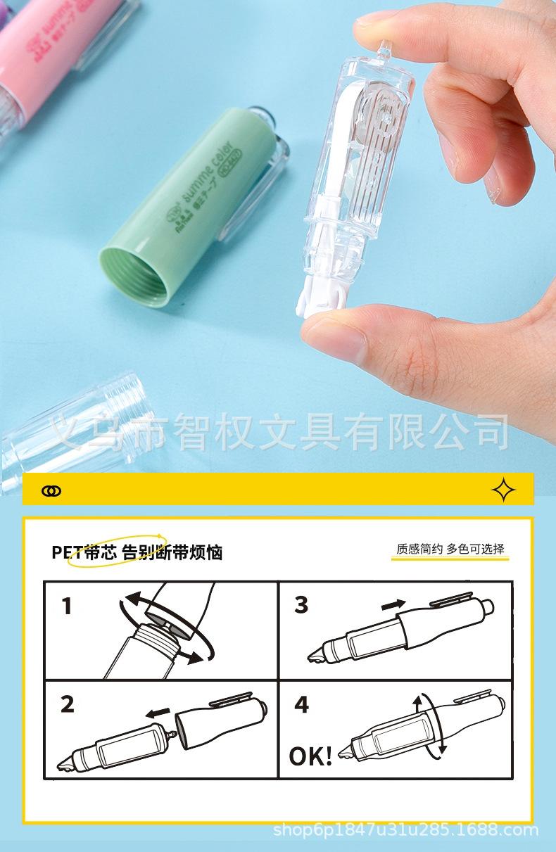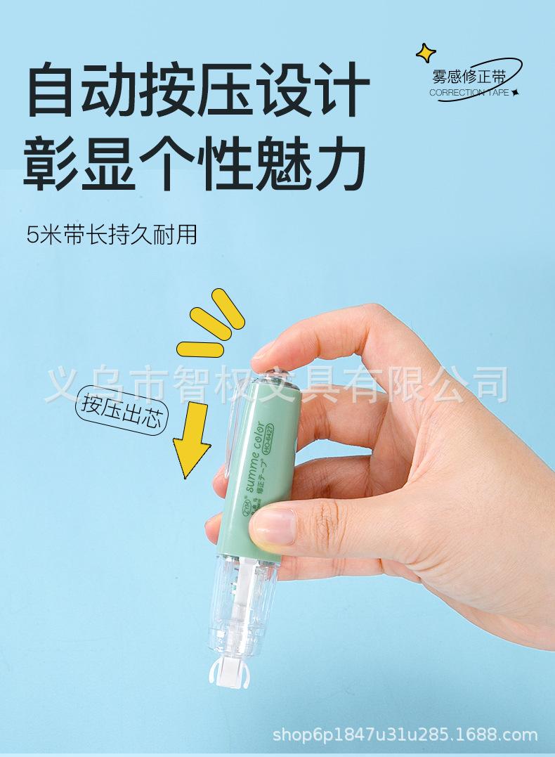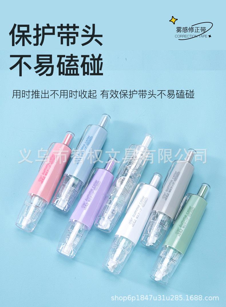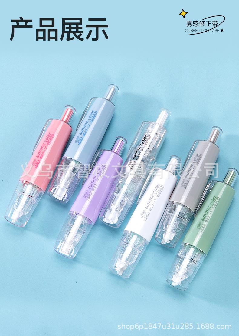 Cinta correctora de tipo pulsador con núcleo reemplazable, cinta correctora silenciosa de siete colores, pequeña y portátil, venta al por mayor de fábrica de cintas correctoras